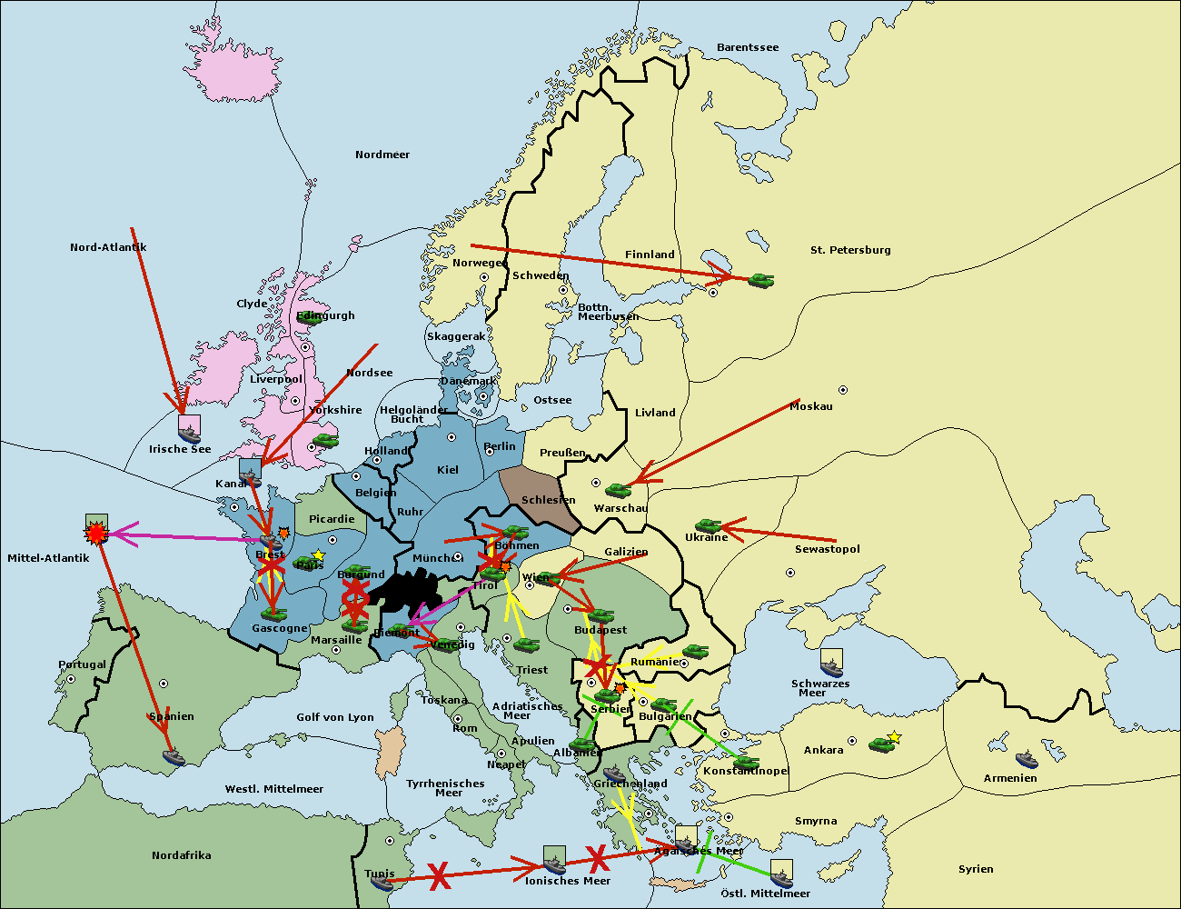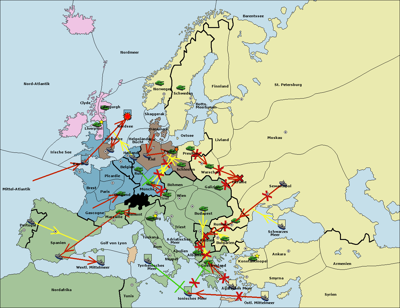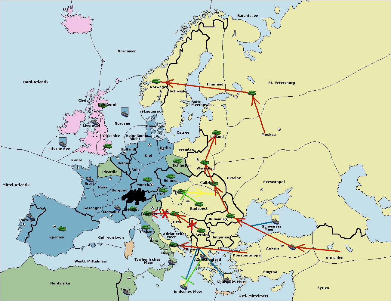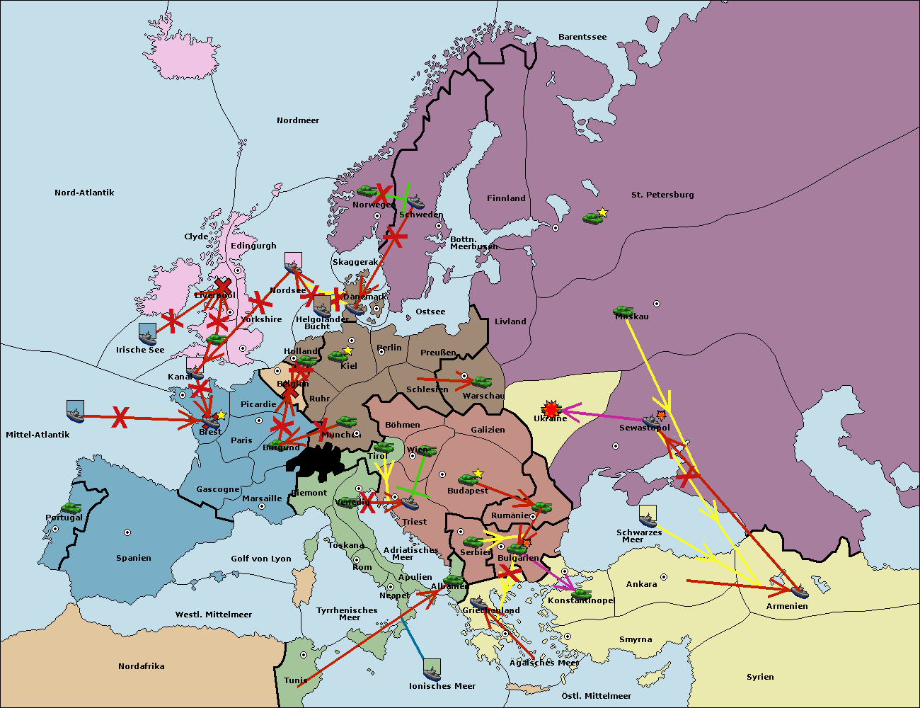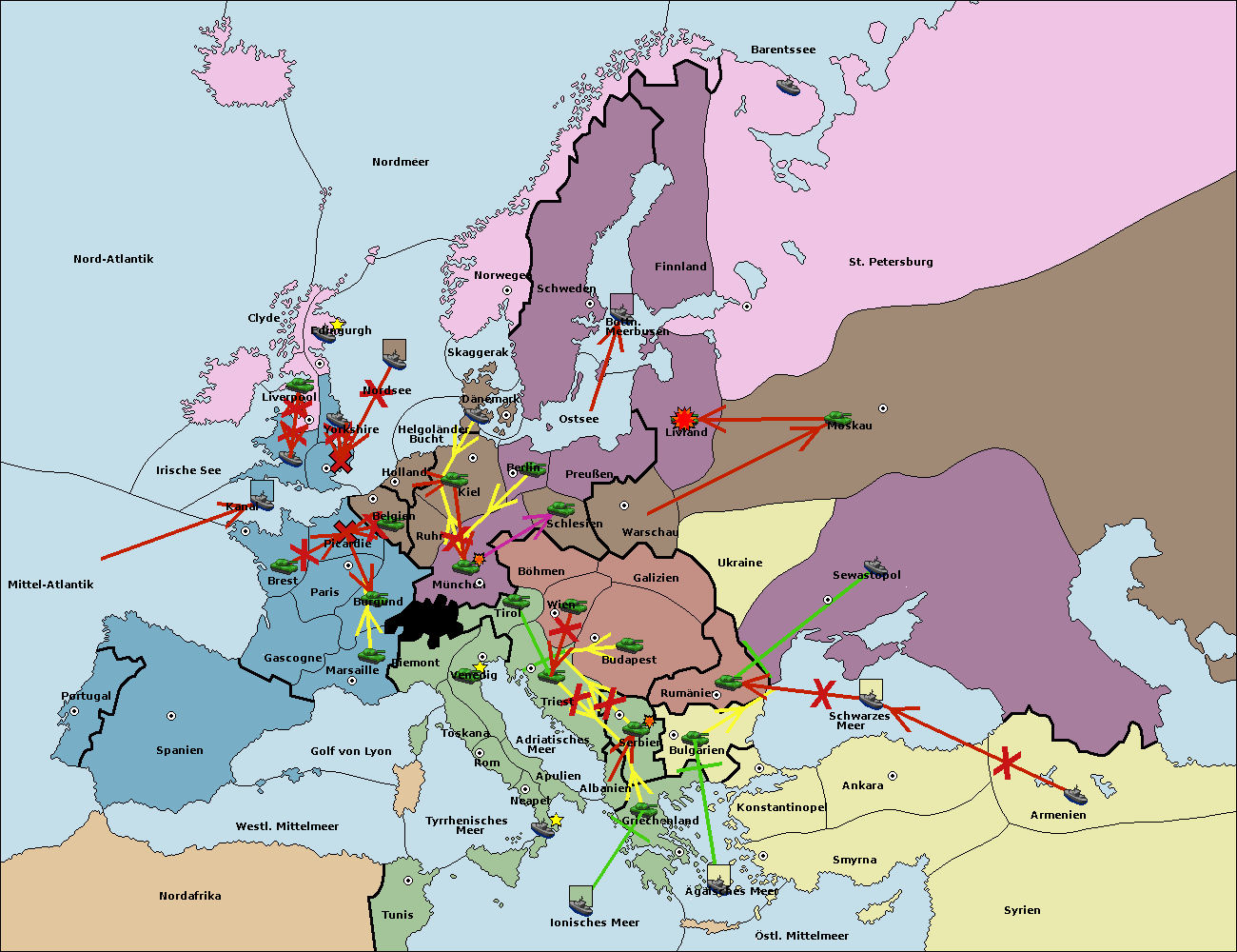• Die Flotte in Bulgarien (Südküste) move nach Griechenland.
