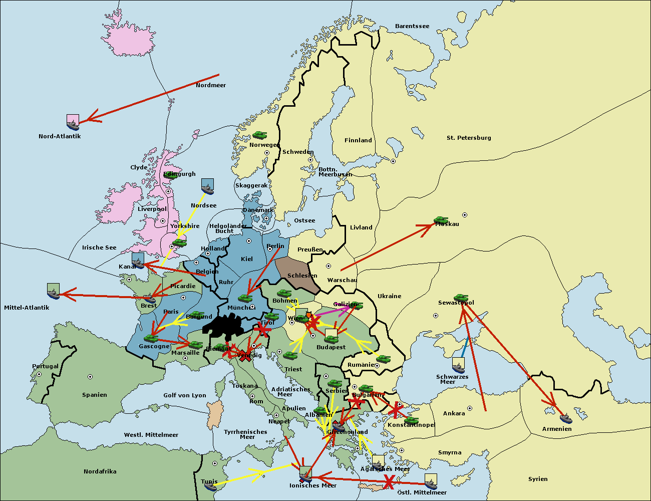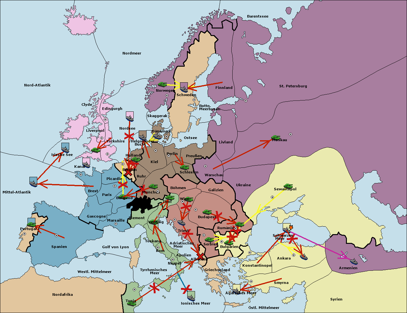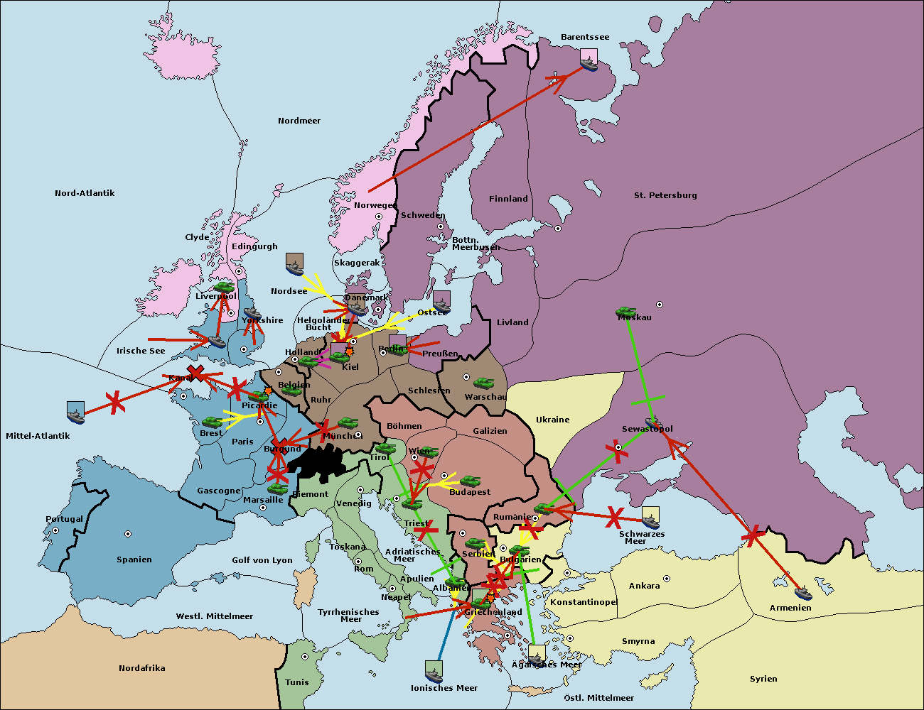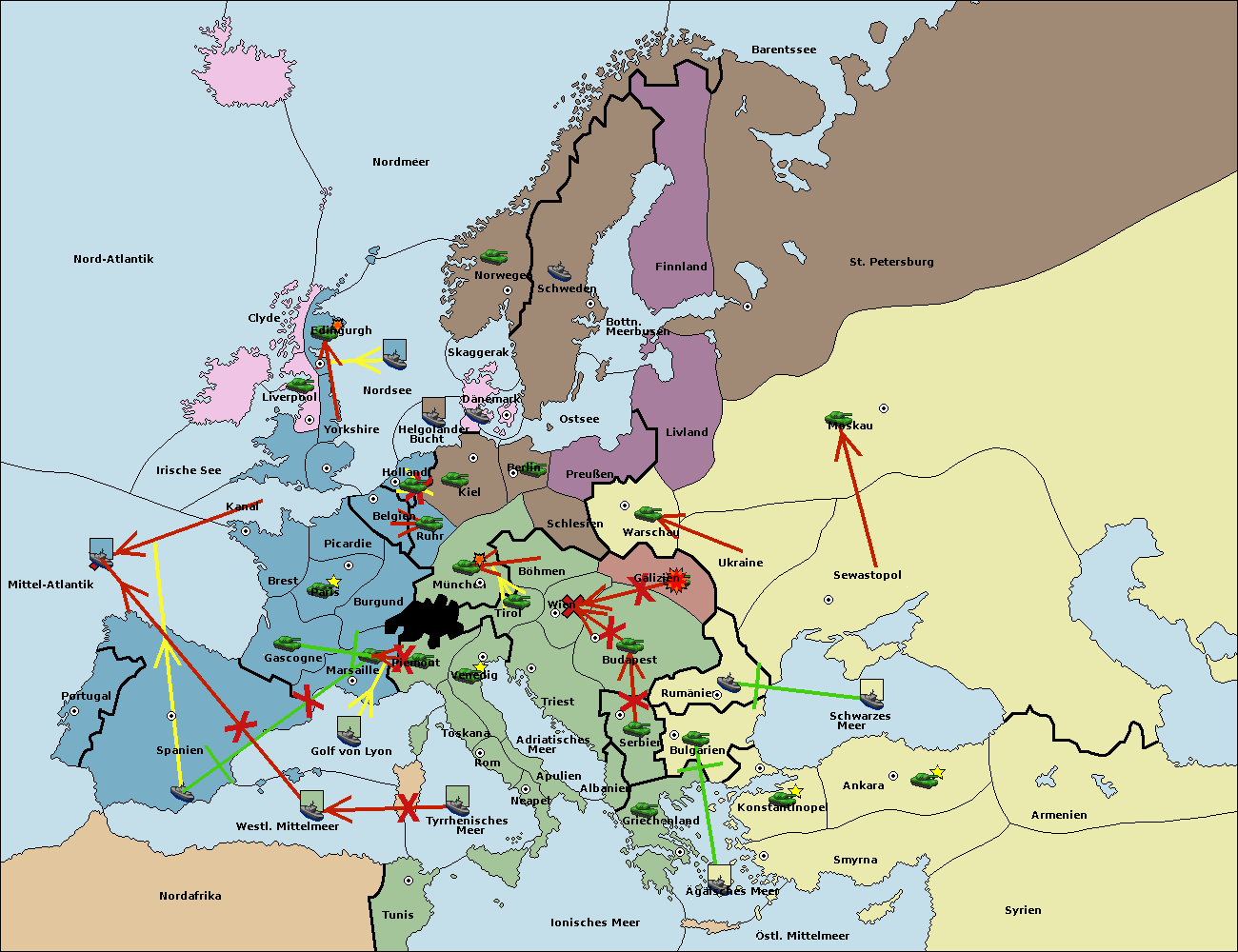 • Die Flotte in Bulgarien (Südküste) move nach Griechenland.