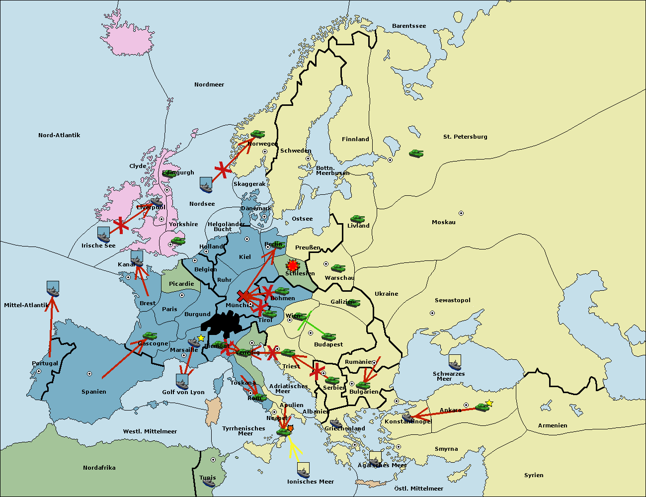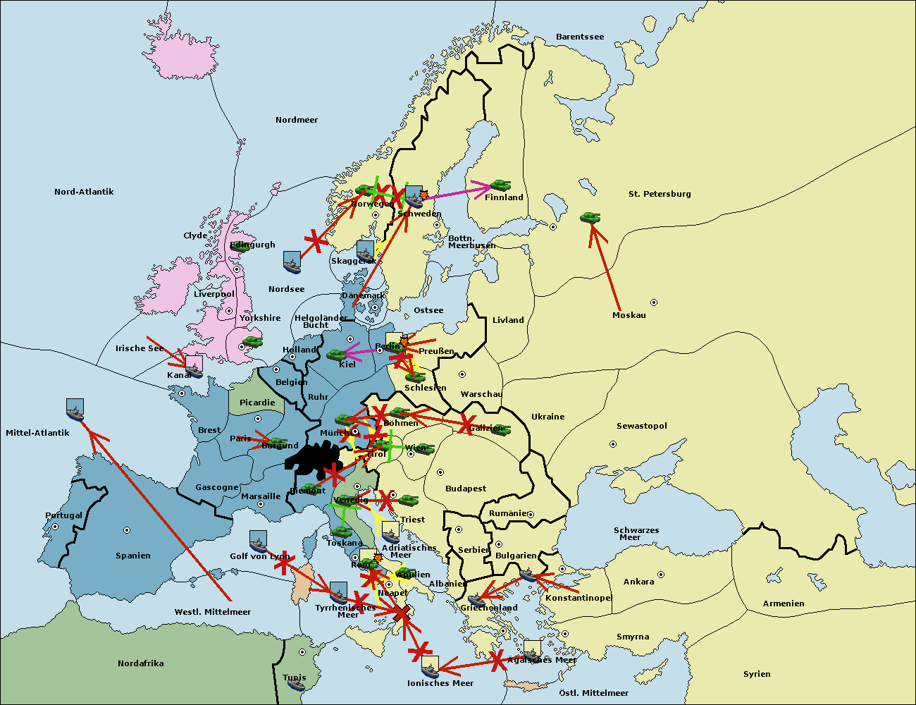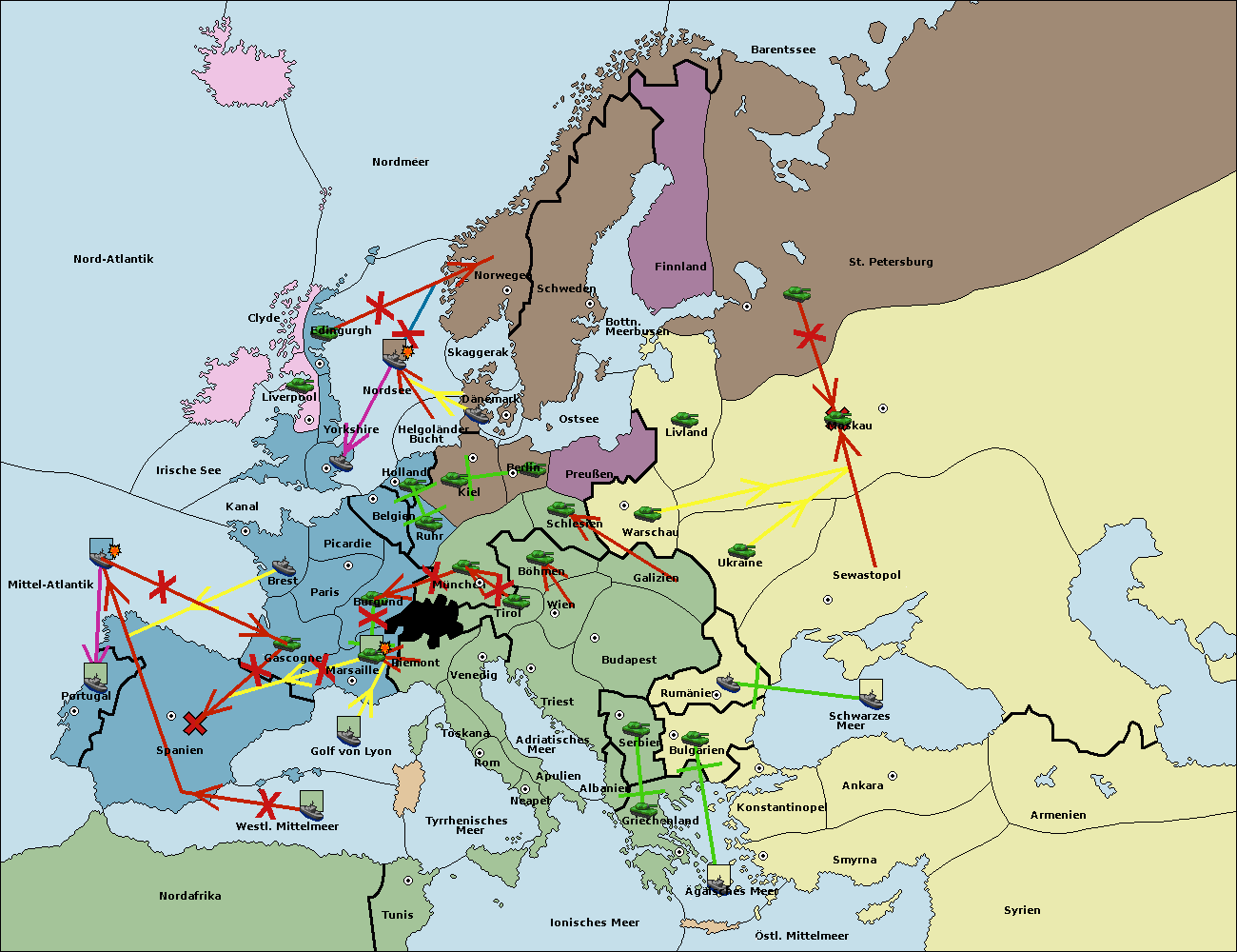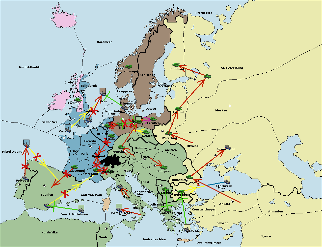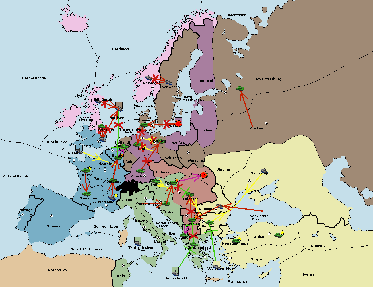 • Die Flotte in Bulgarien (Südküste) move nach Griechenland.