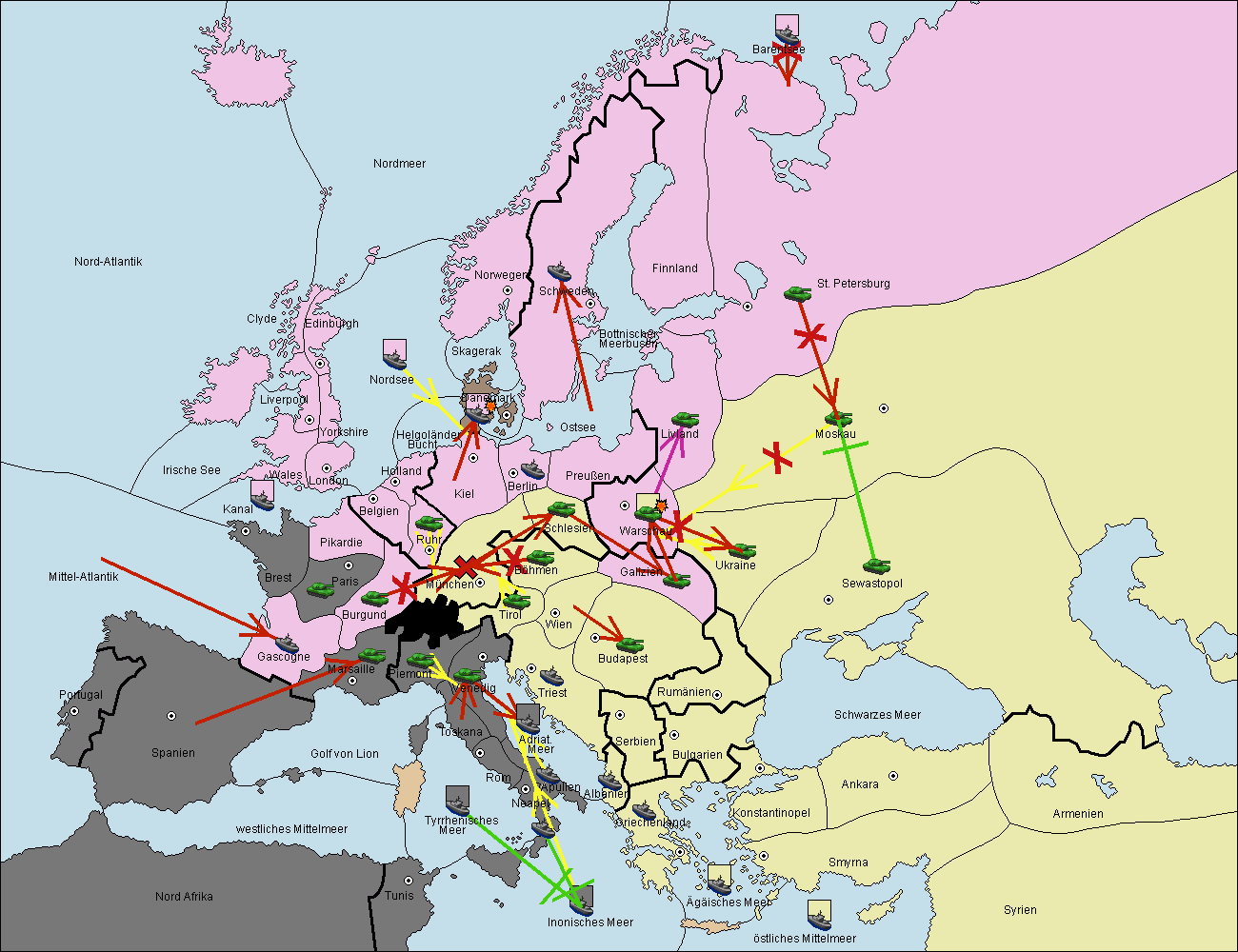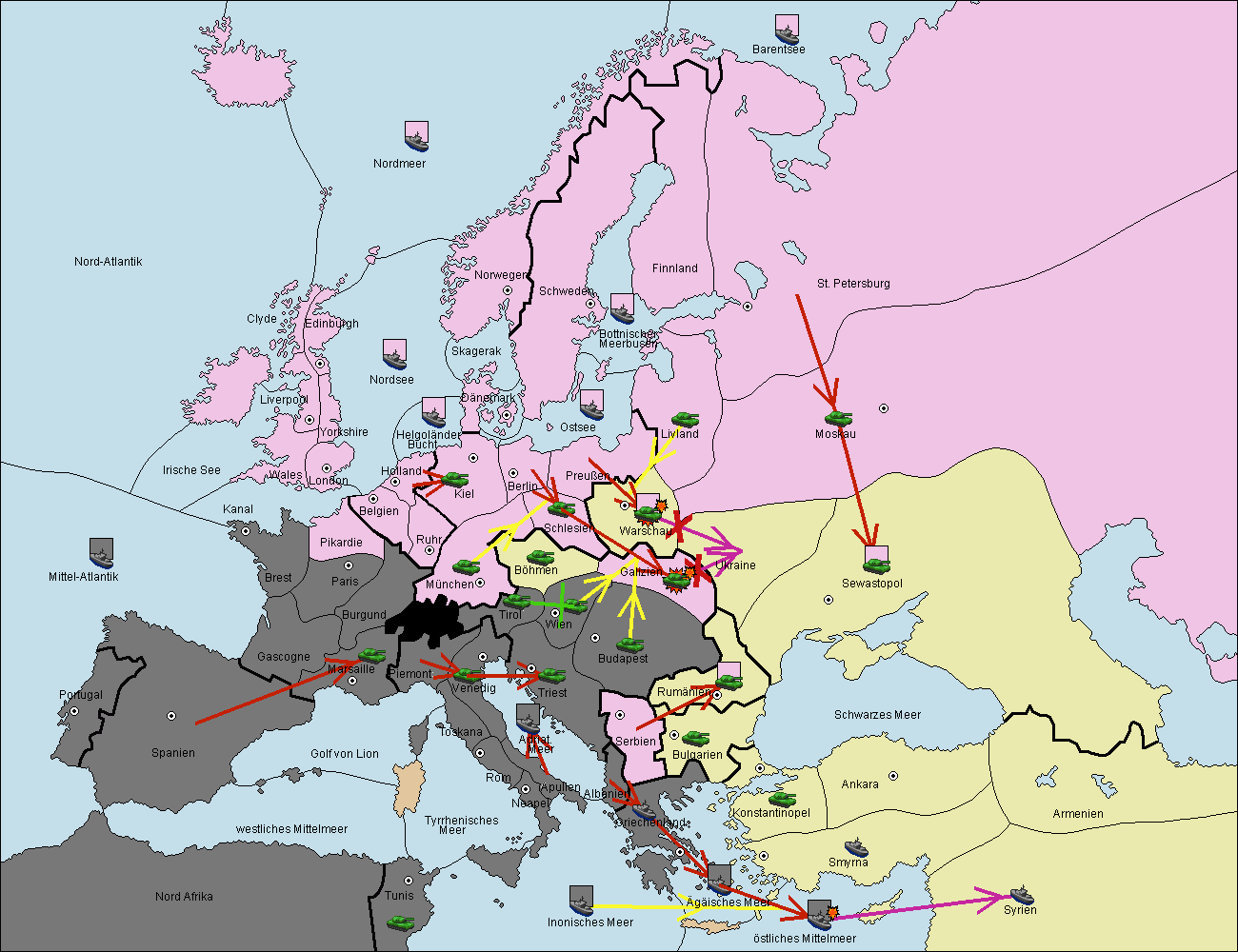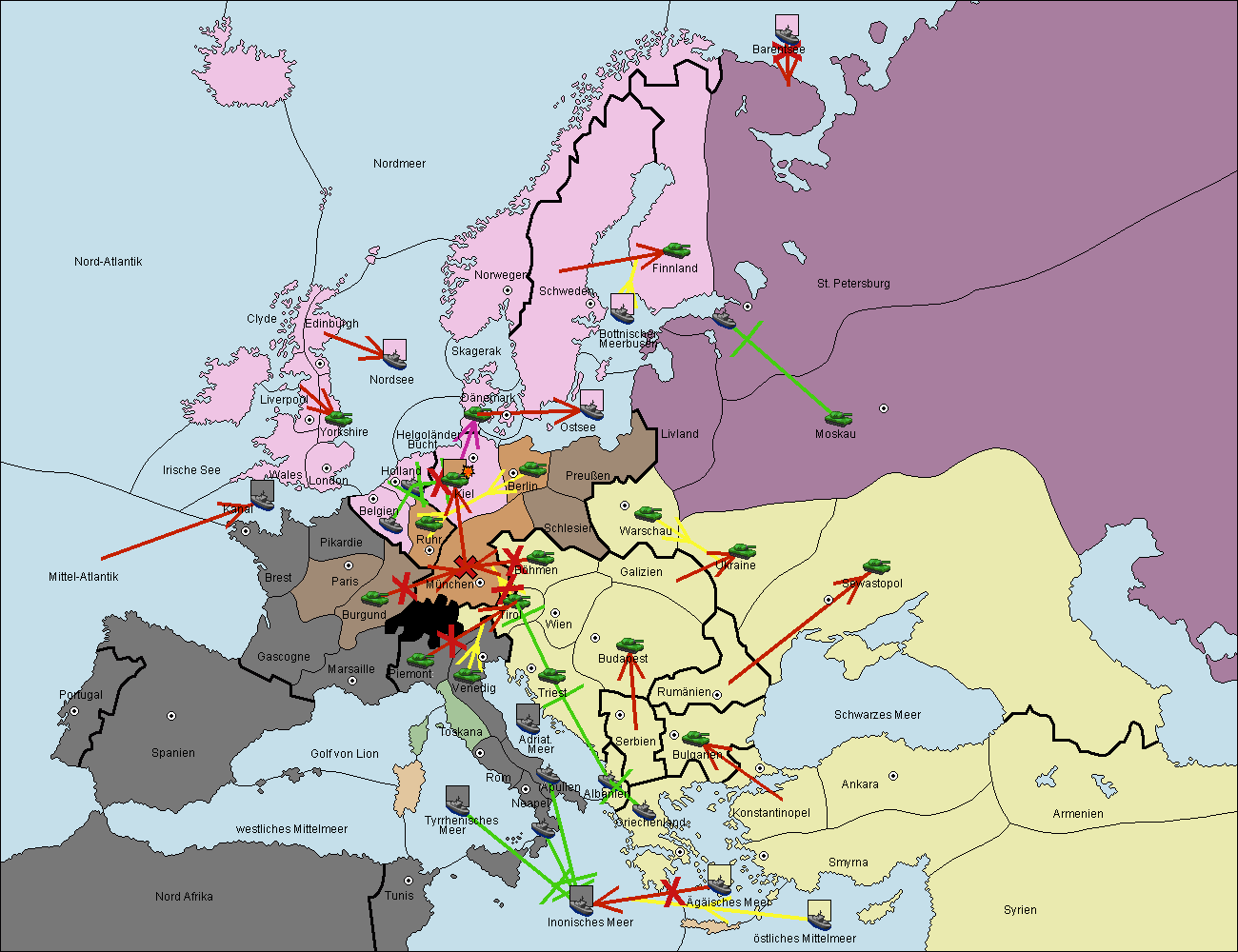 • Die Armee in Bulgarien wird zerstörtFlotte in Bulgarien gebaut.
