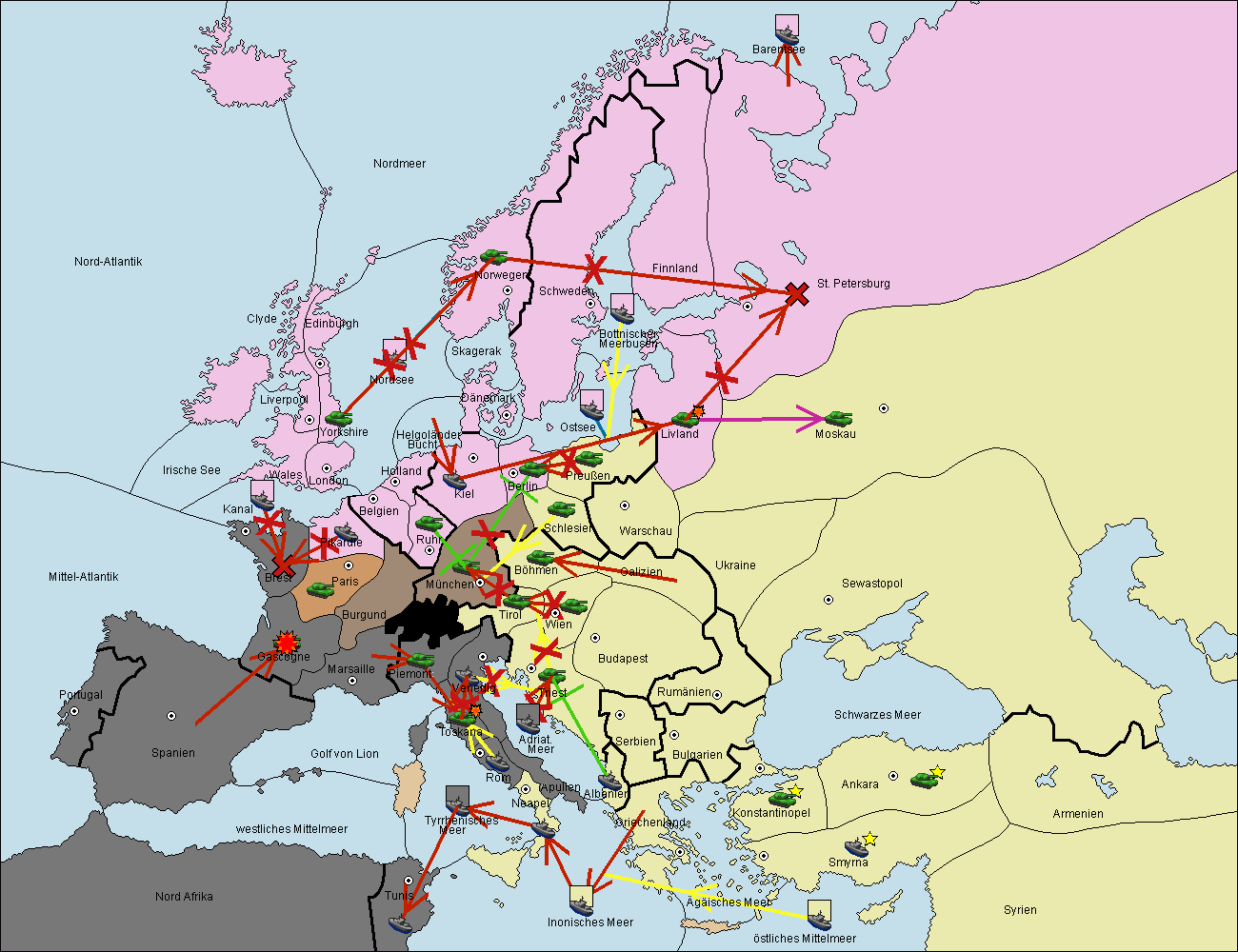 • Die Armee in Tunis move nach Bulgarien via Concoy. (gescheitert)