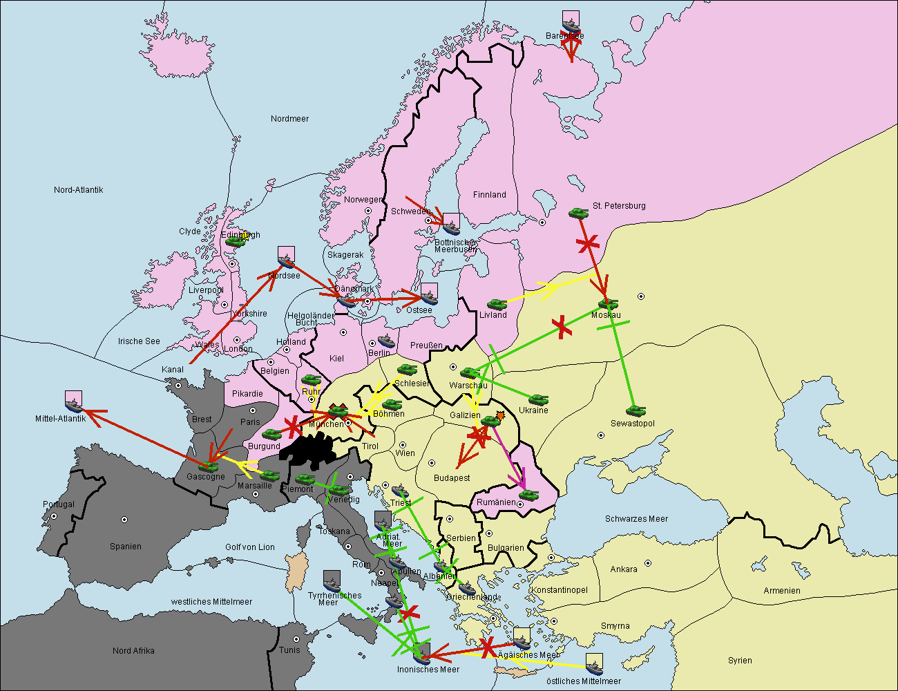 • Die Armee in Kiel support move nach München von Ruhr. (gescheitert)