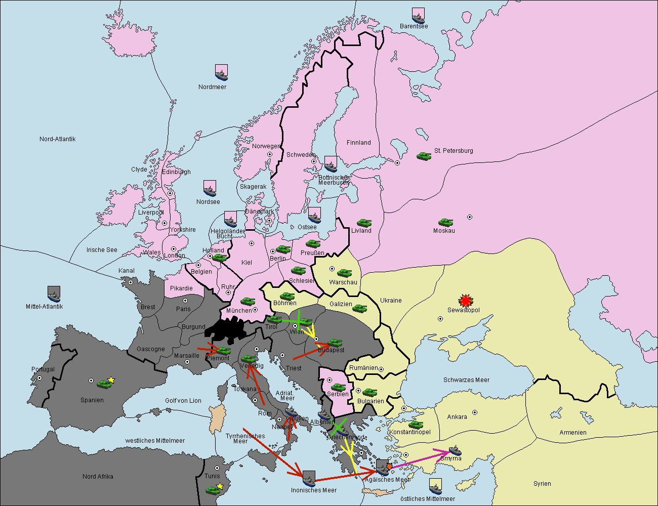 • Die Armee in Bulgarien support move nach Konstantinopel von Tunis. (gescheitert)