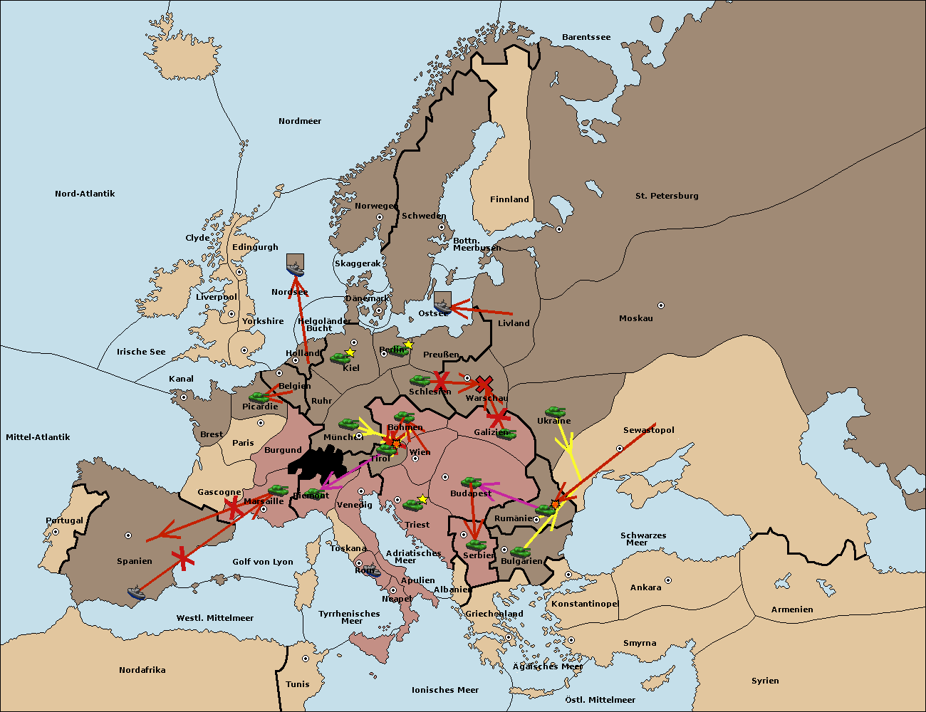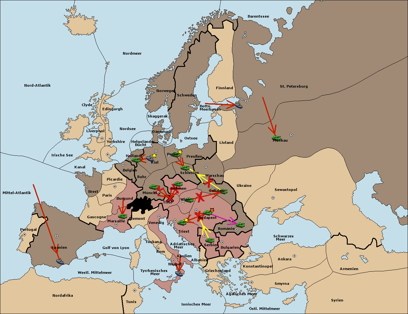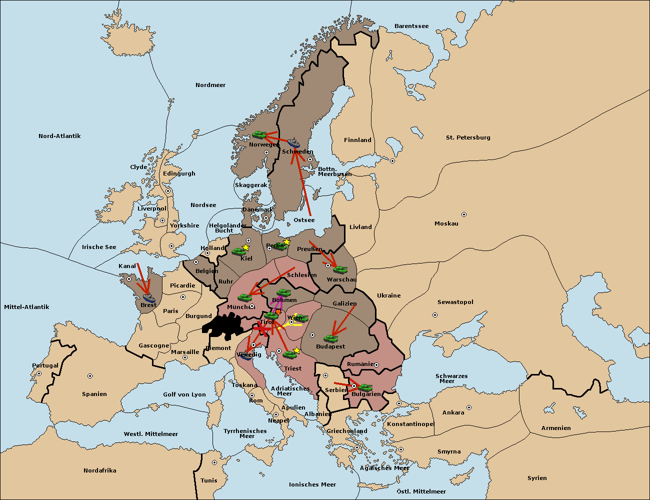 • Die Armee in Triest support move nach Wien von Budapest.