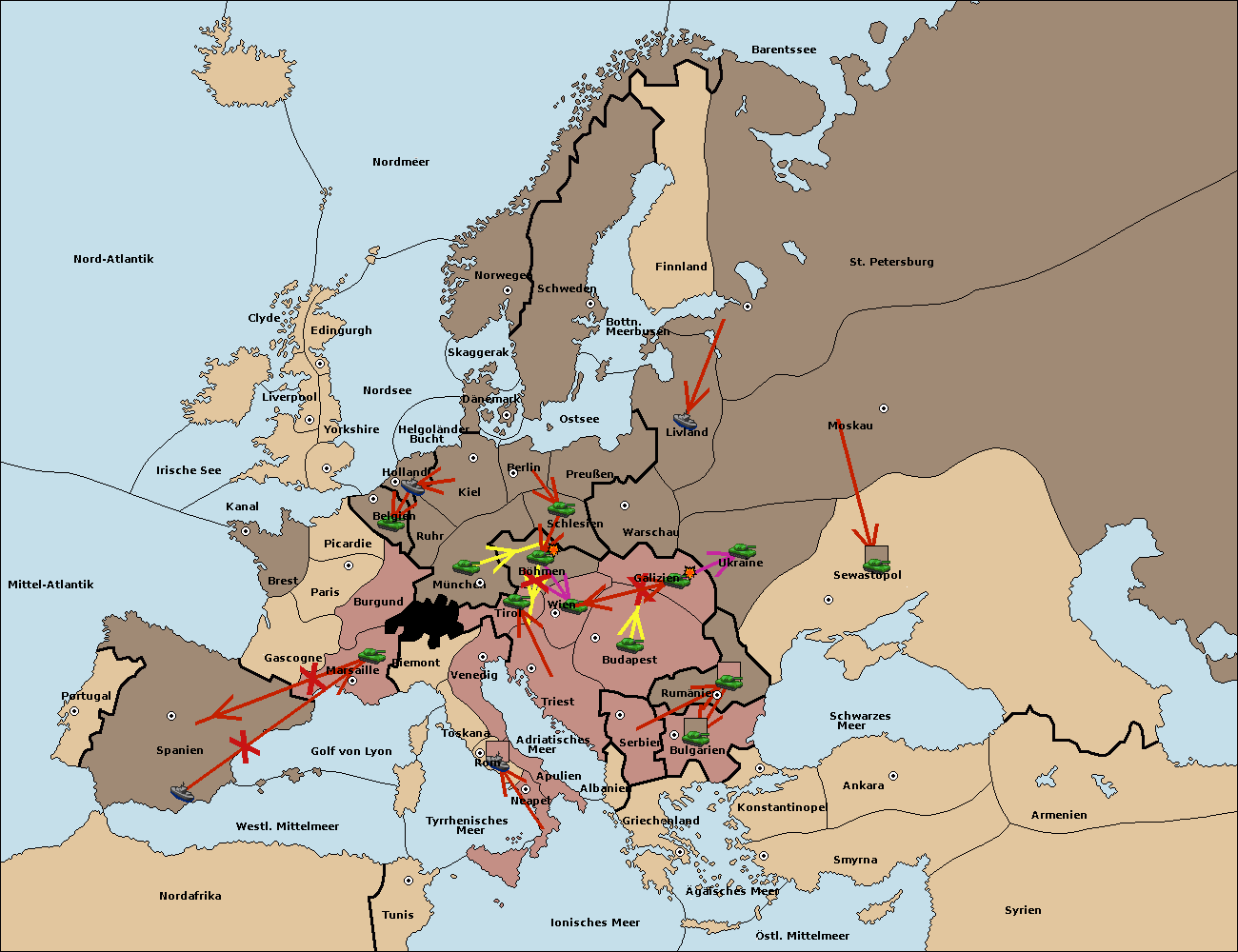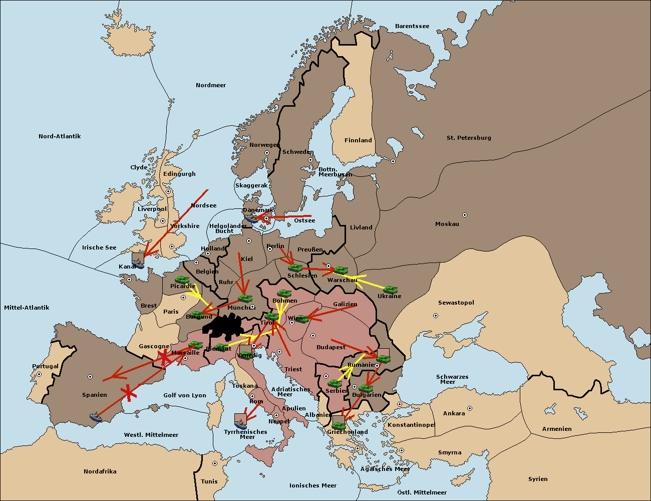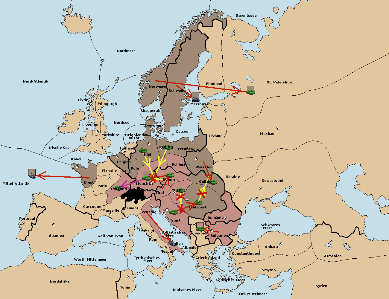 • Die Armee in Triest support move nach Wien von Budapest.