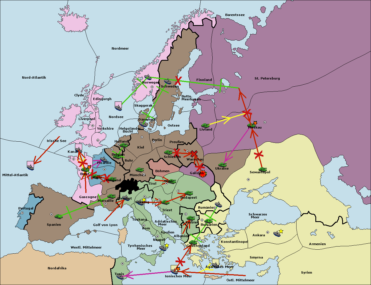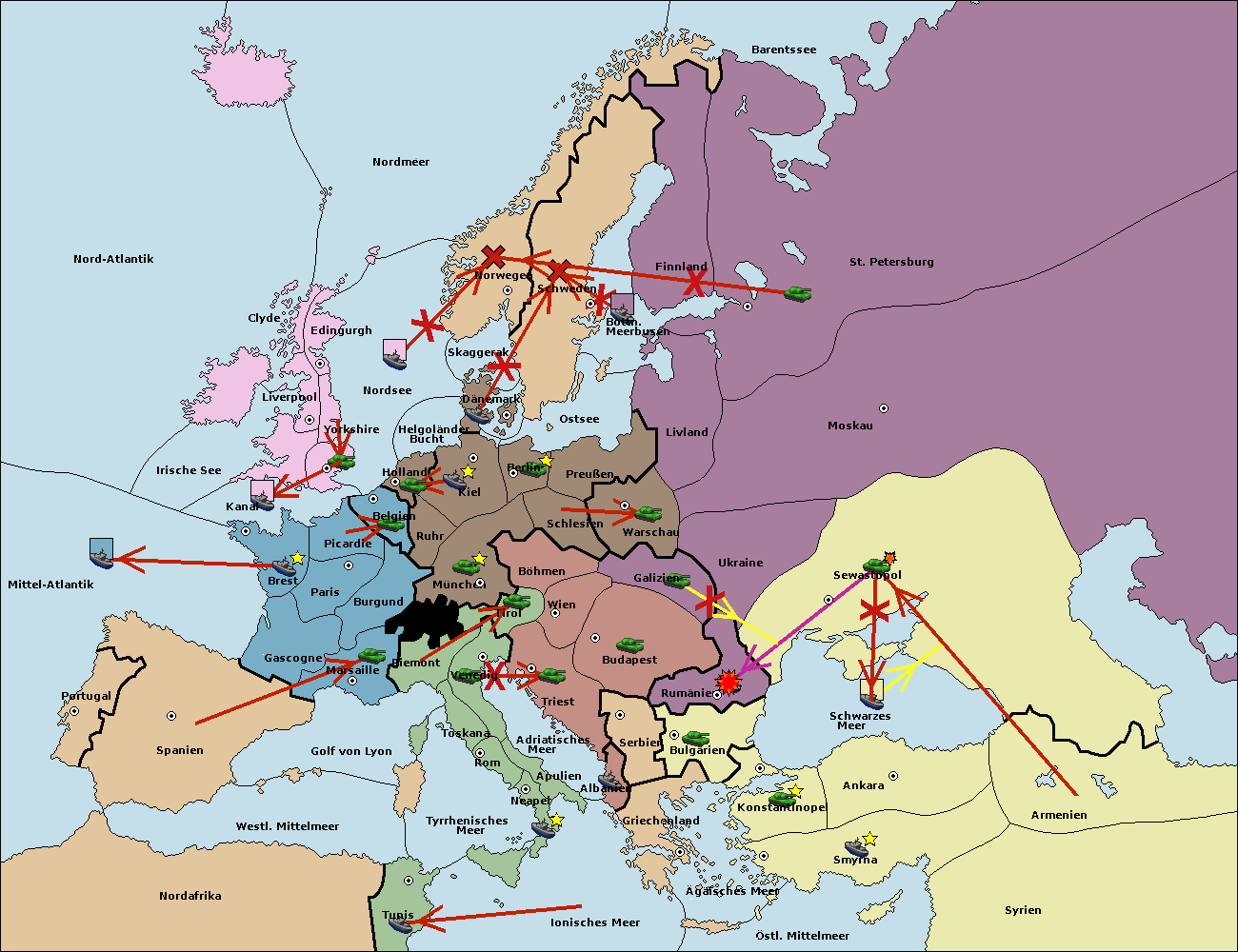 • Die Armee in Galizien support move nach Rumänien von Sewastopol. (gescheitert)