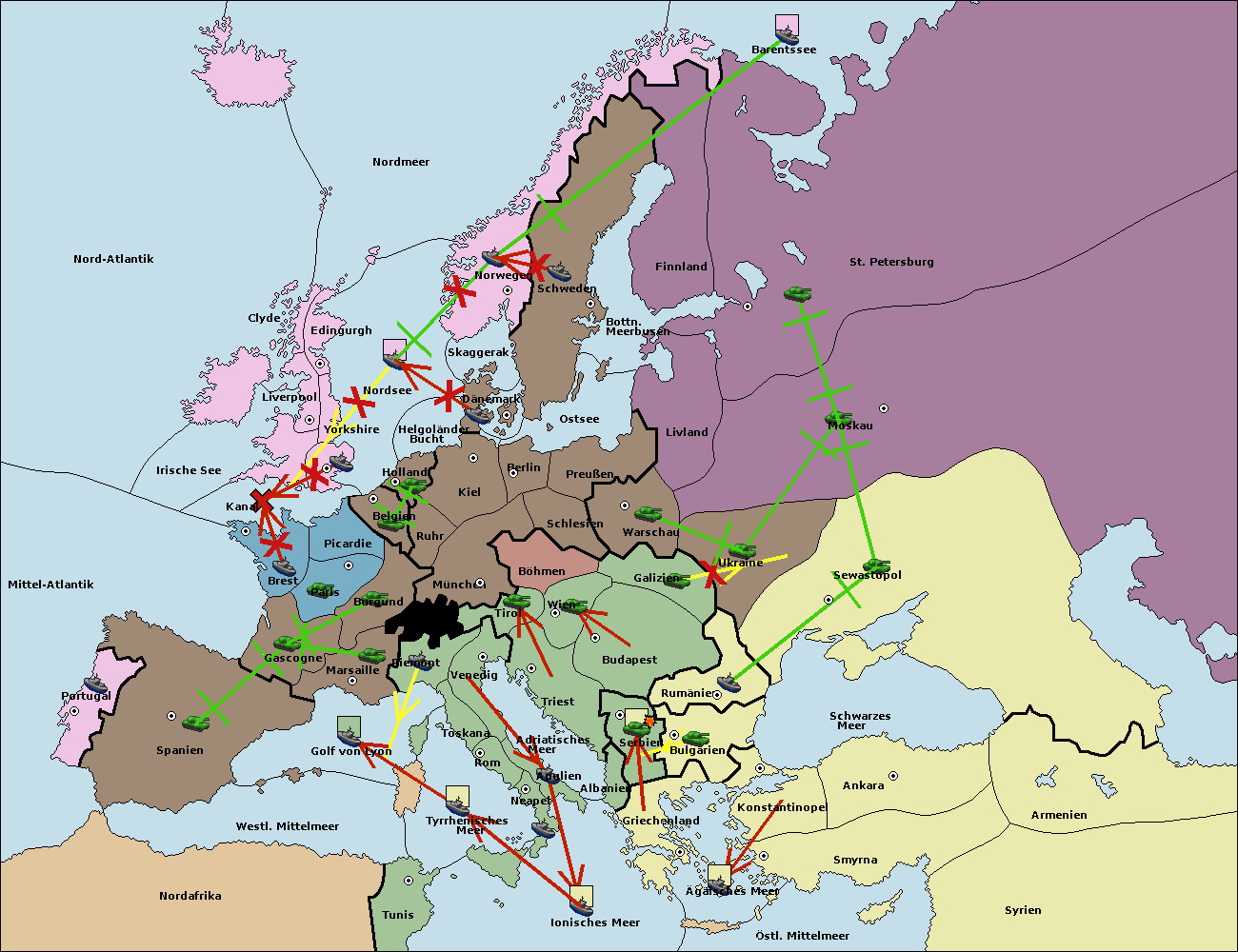 • Die Armee in Bulgarien move nach Serbien. (gescheitert)