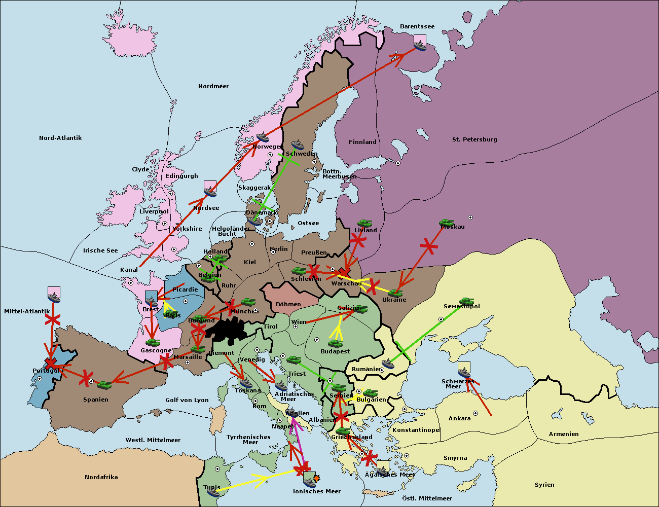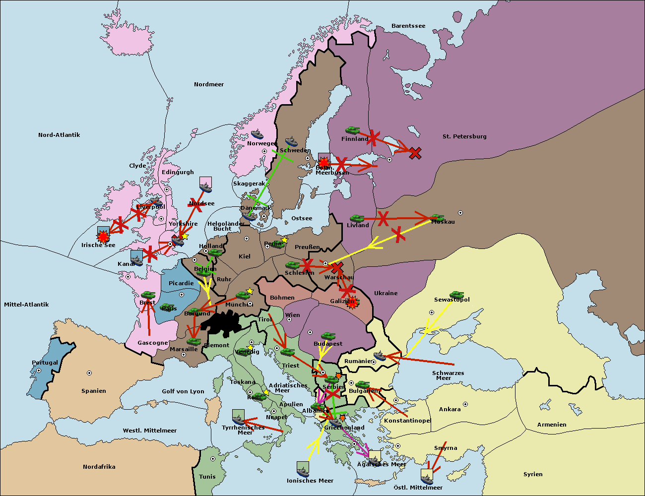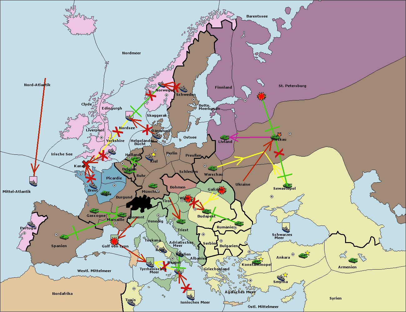 • Die Flotte in Smyrna move nach östl. Mittelmeer. (gescheitert)