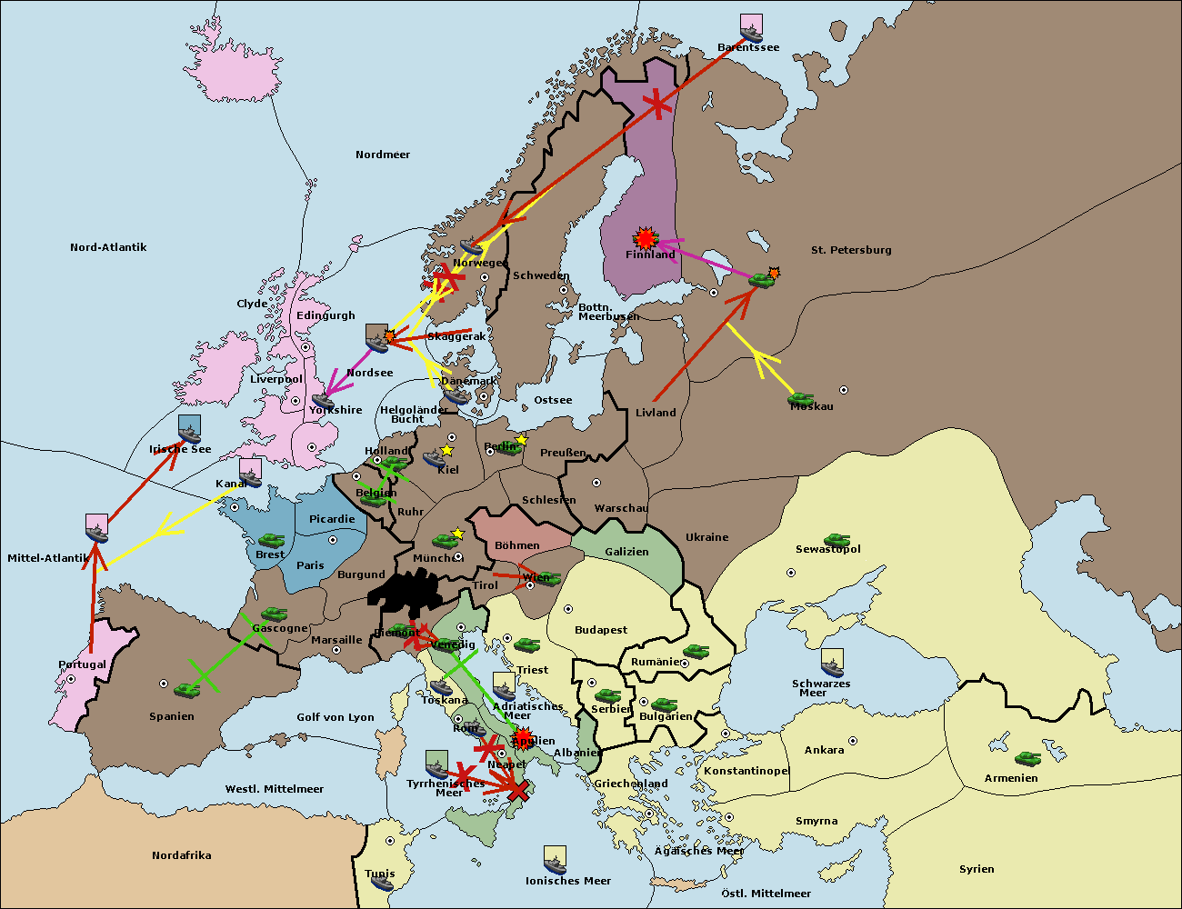 • Die Armee in St. Petersburg move nach Norwegen. (gescheitert)