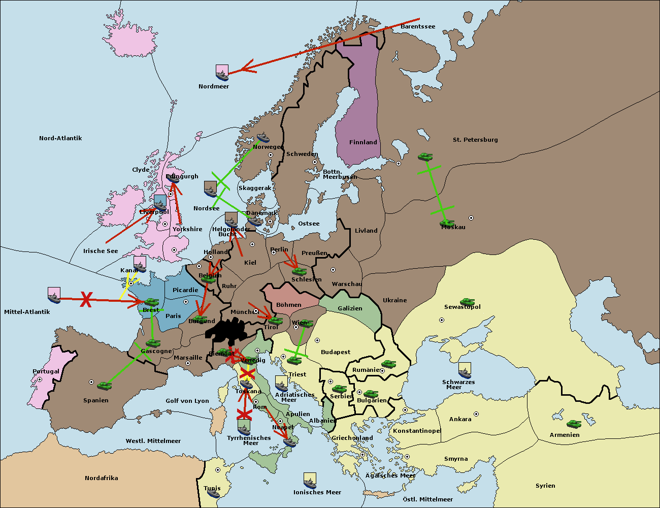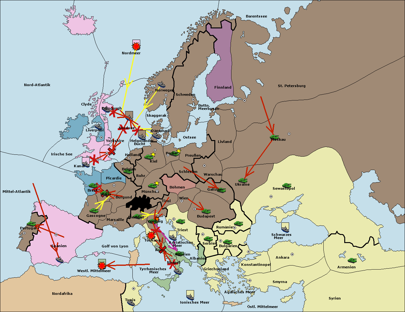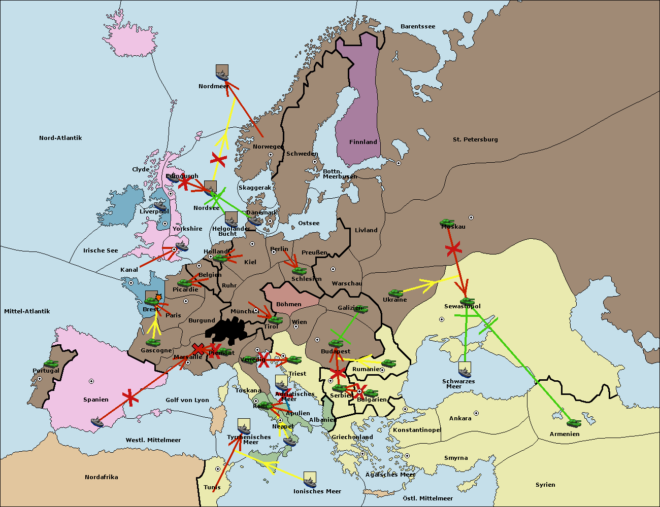 • Die Flotte in Spanien (Südküste) move nach westl. Mittelmeer.
