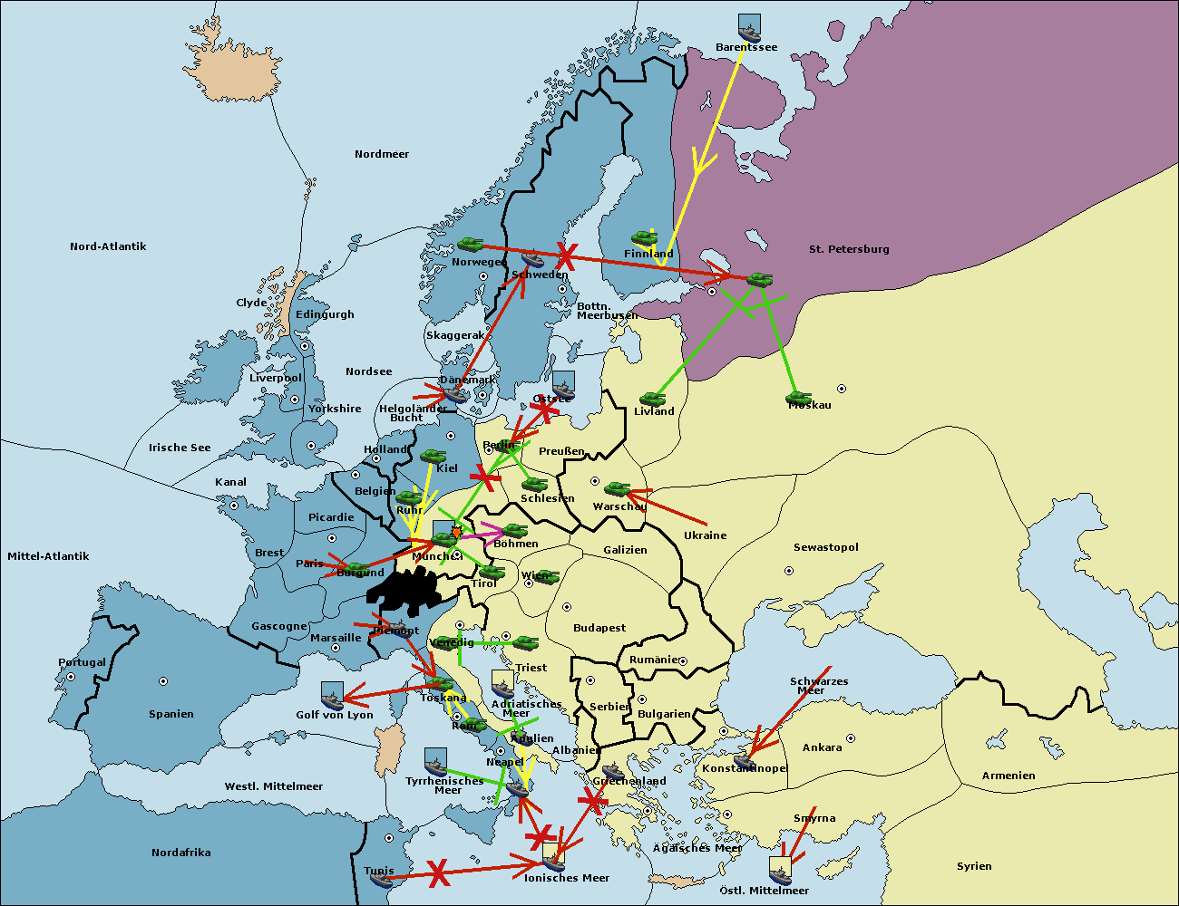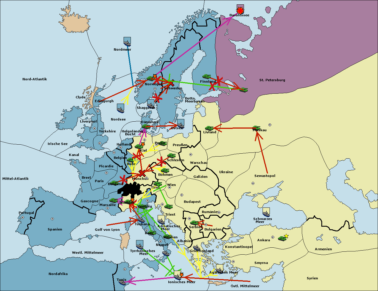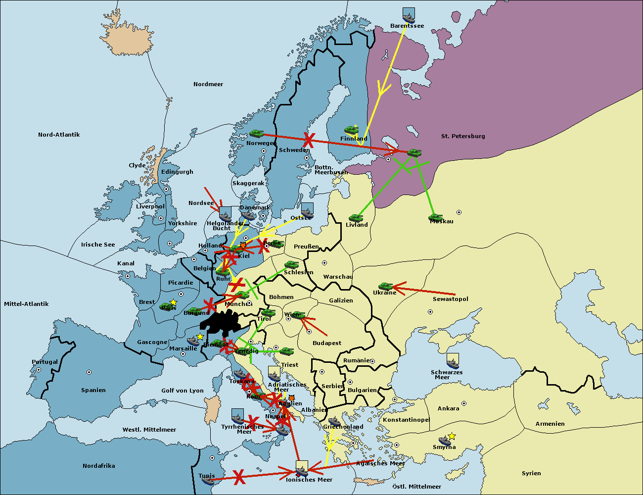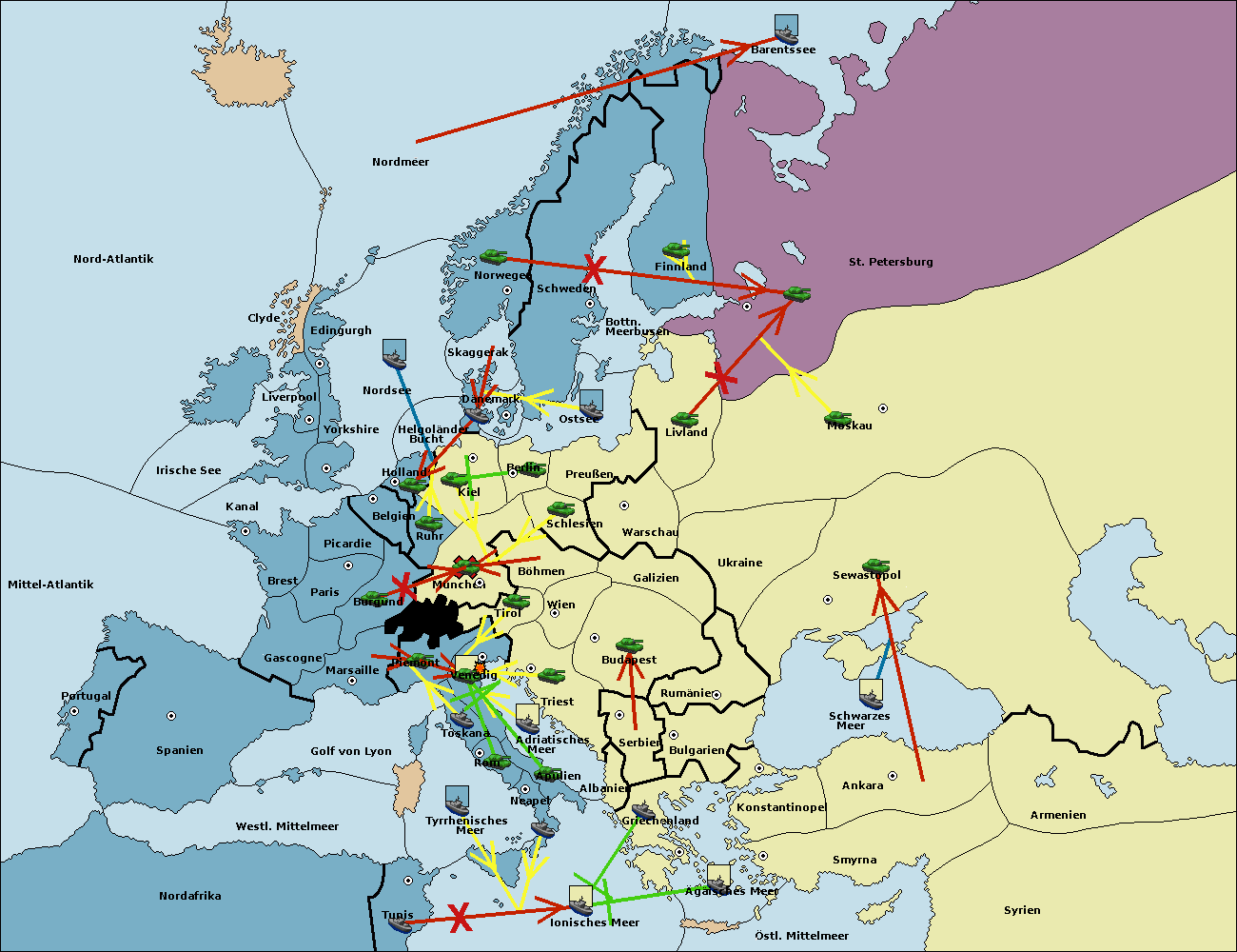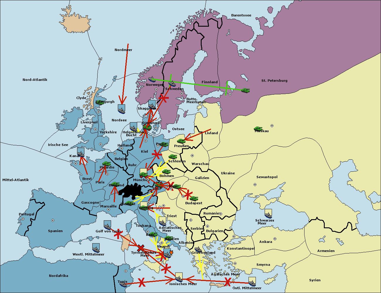 • Die Flotte in St. Petersburg (Nordküste) move nach Norwegen.
