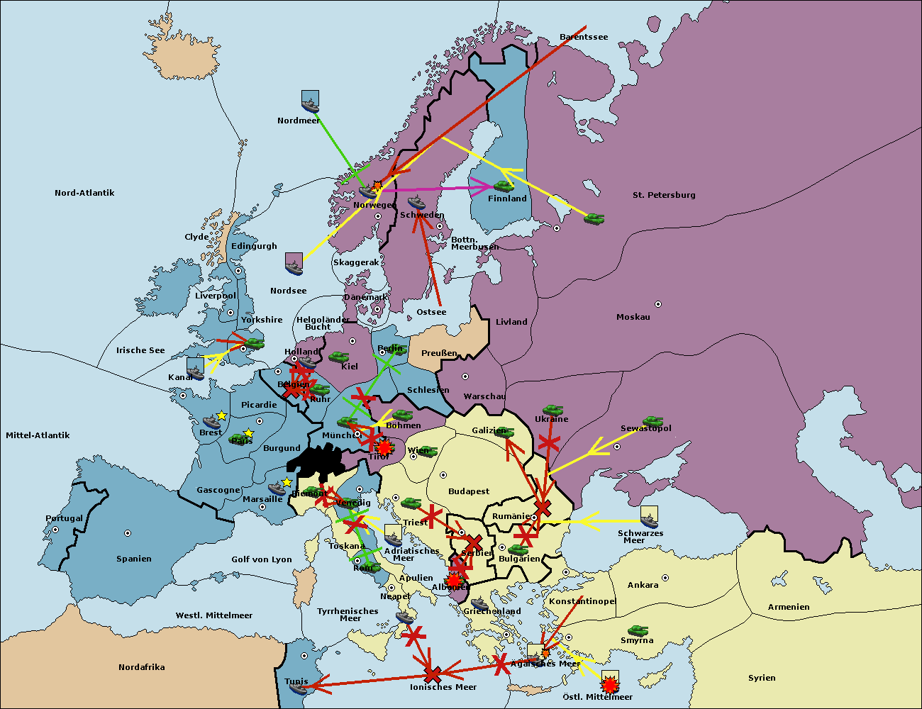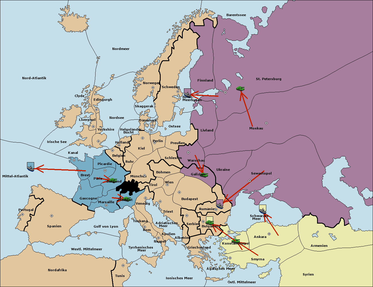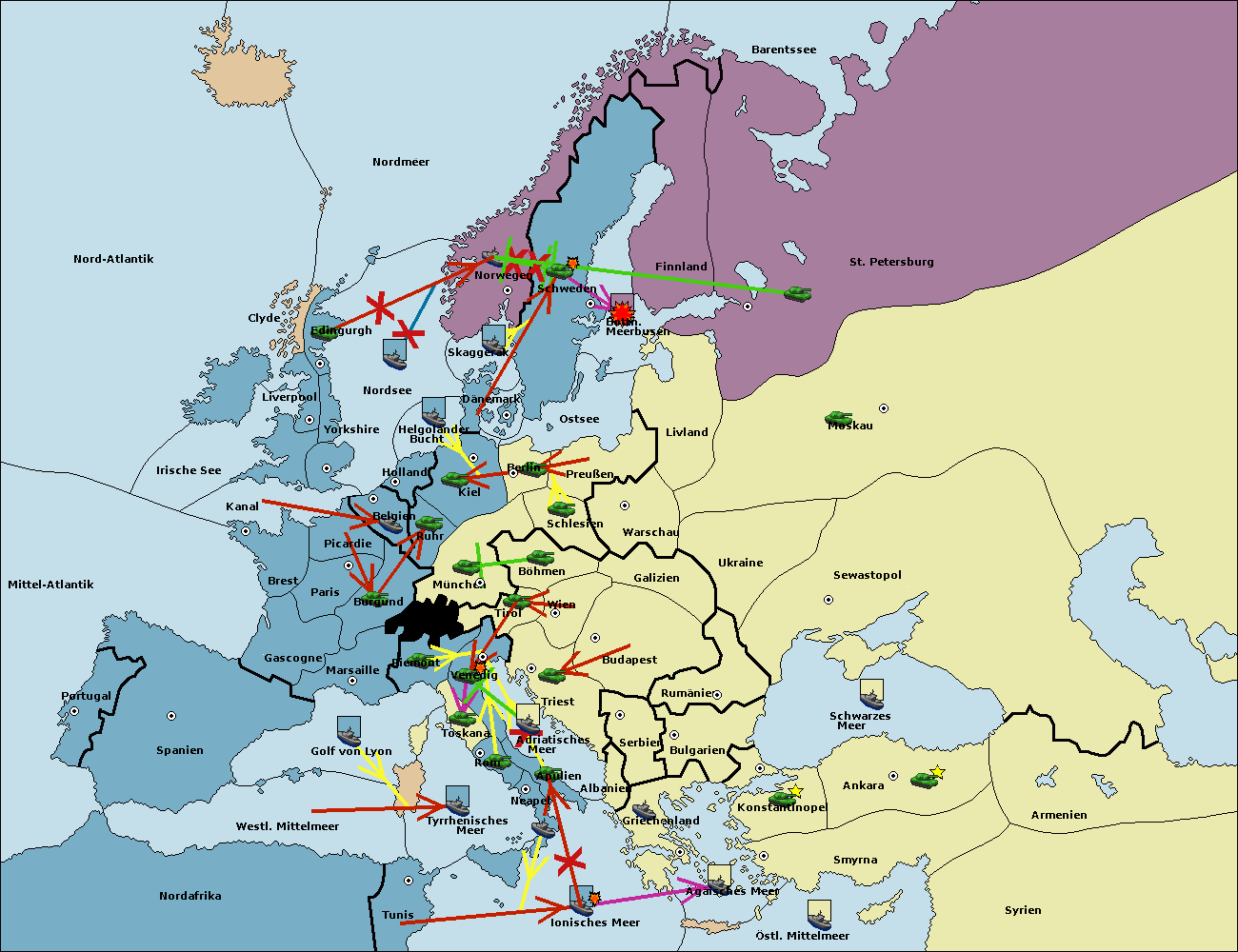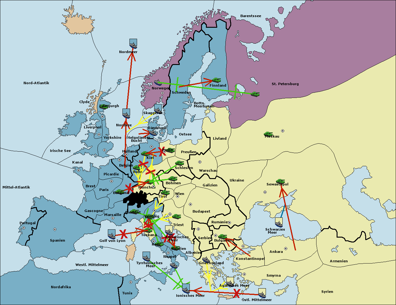 • Die Flotte in St. Petersburg (Nordküste) move nach Norwegen.