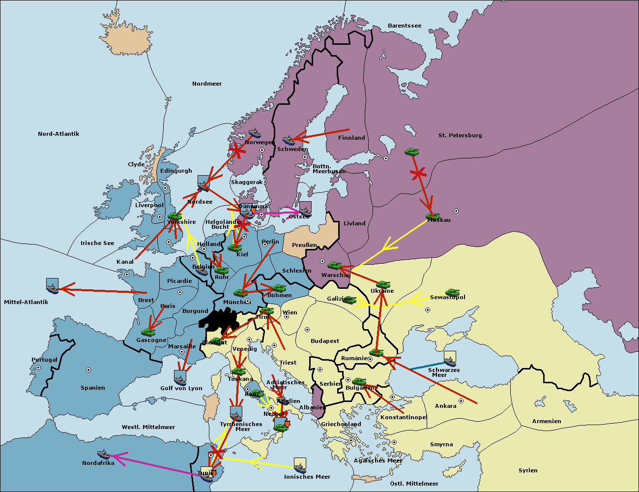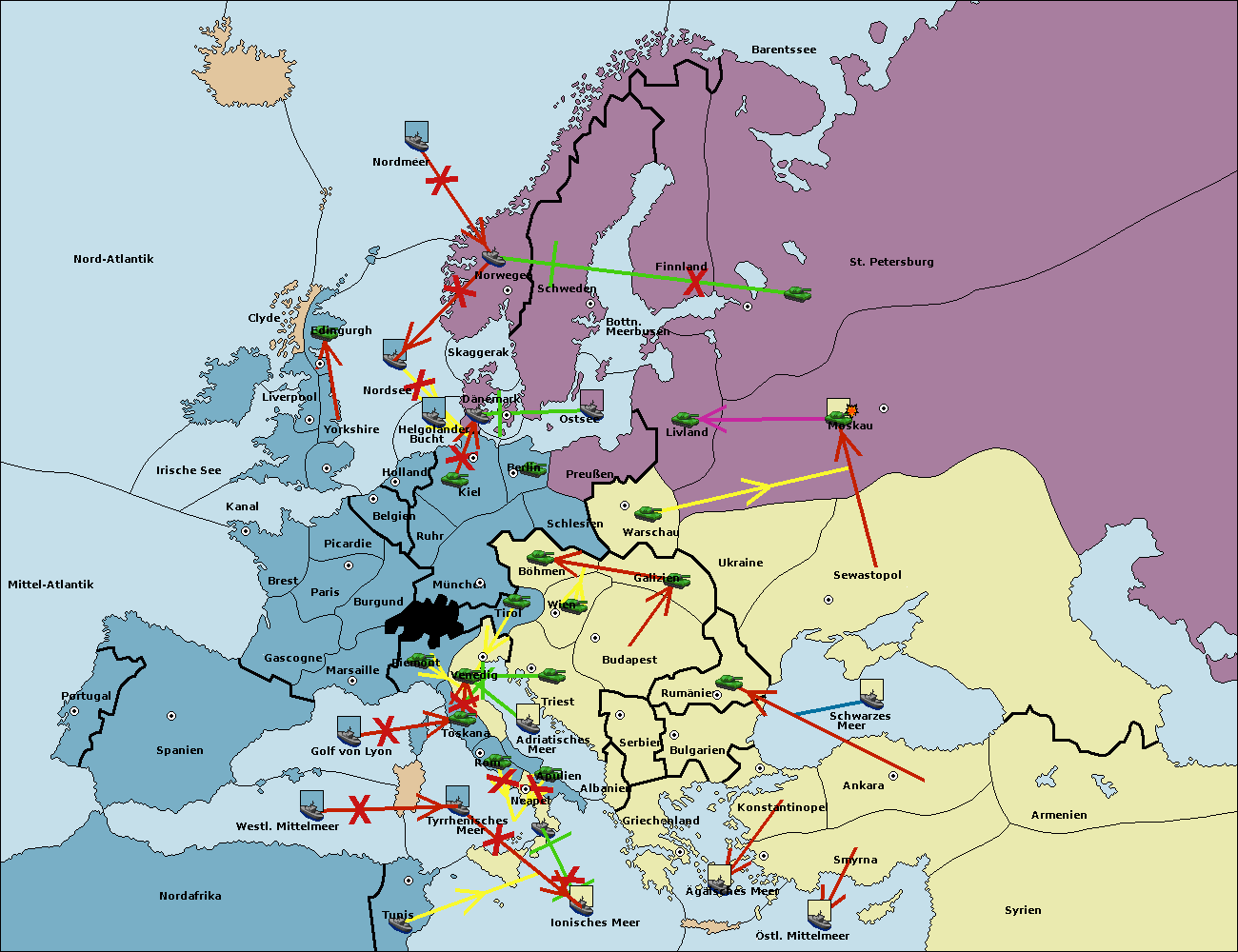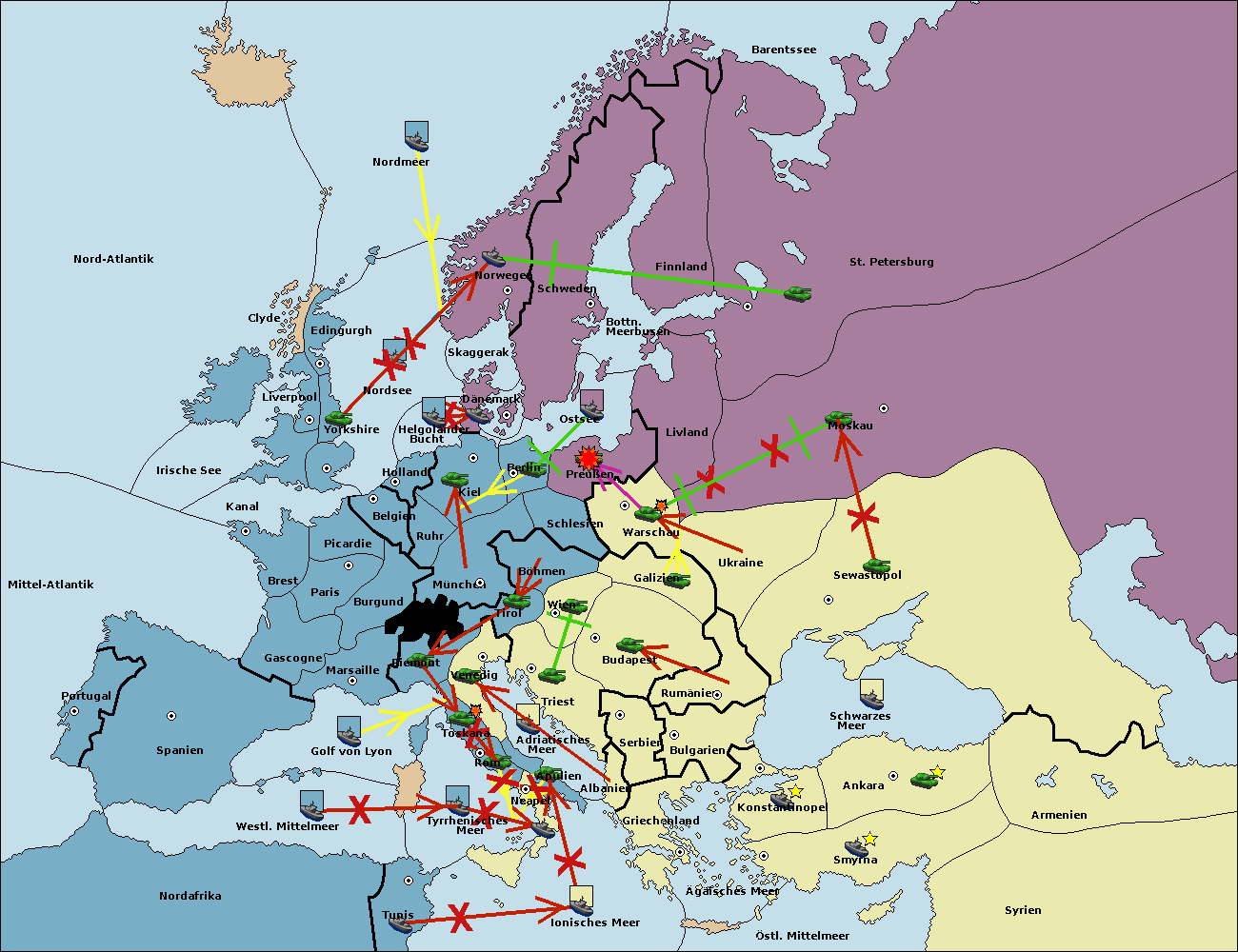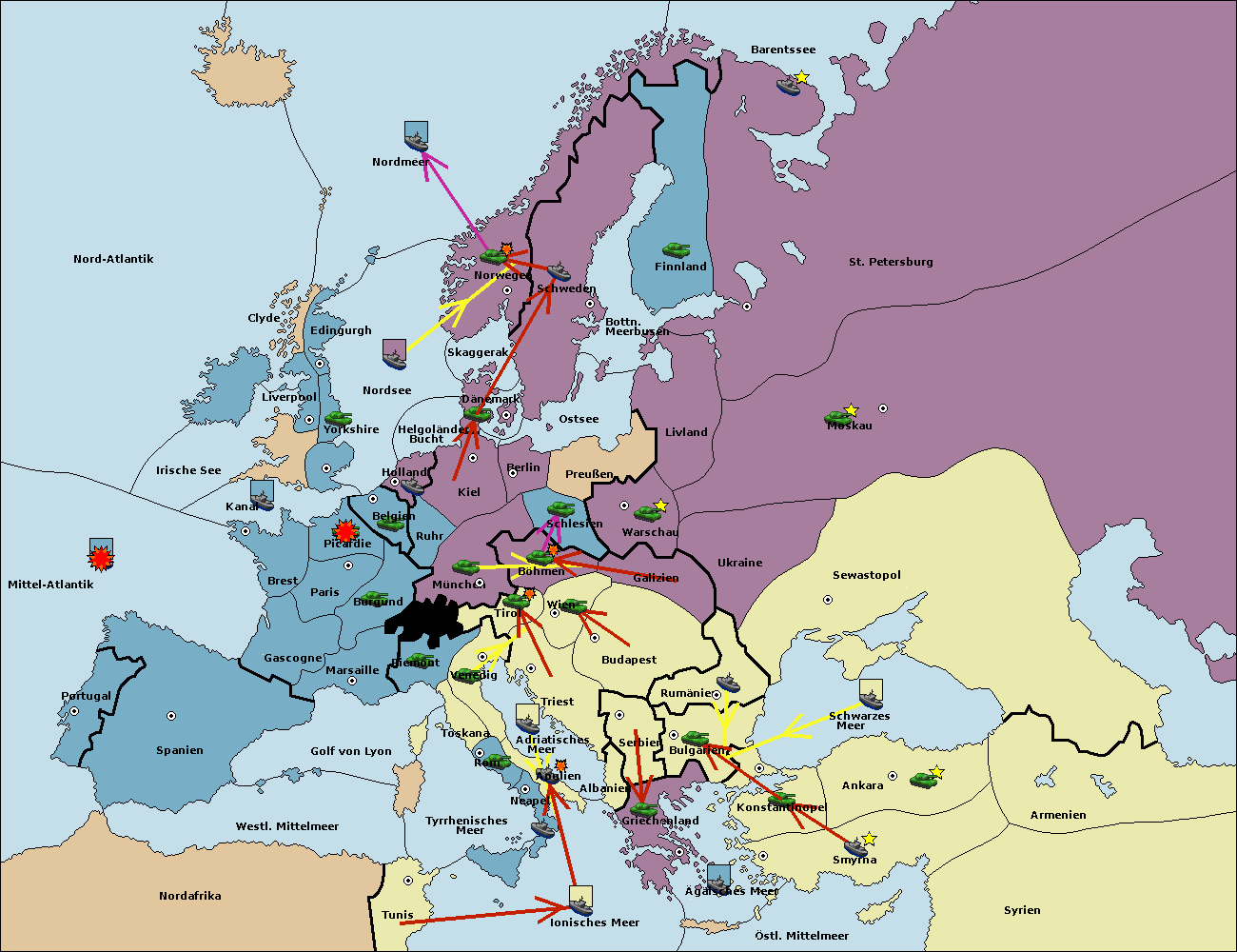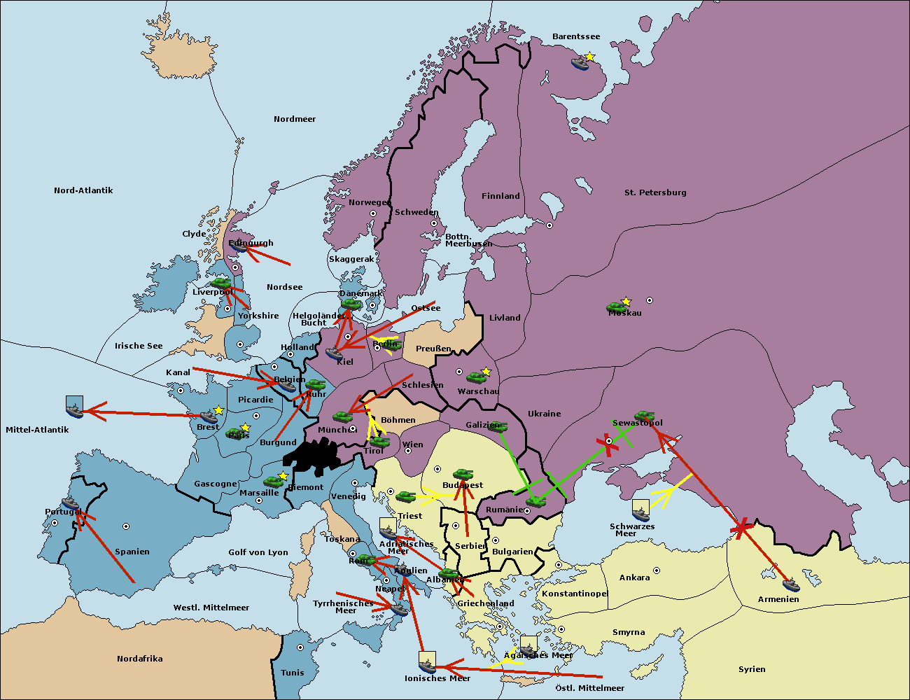 • Die Flotte in St. Petersburg (Nordküste) move nach Norwegen.