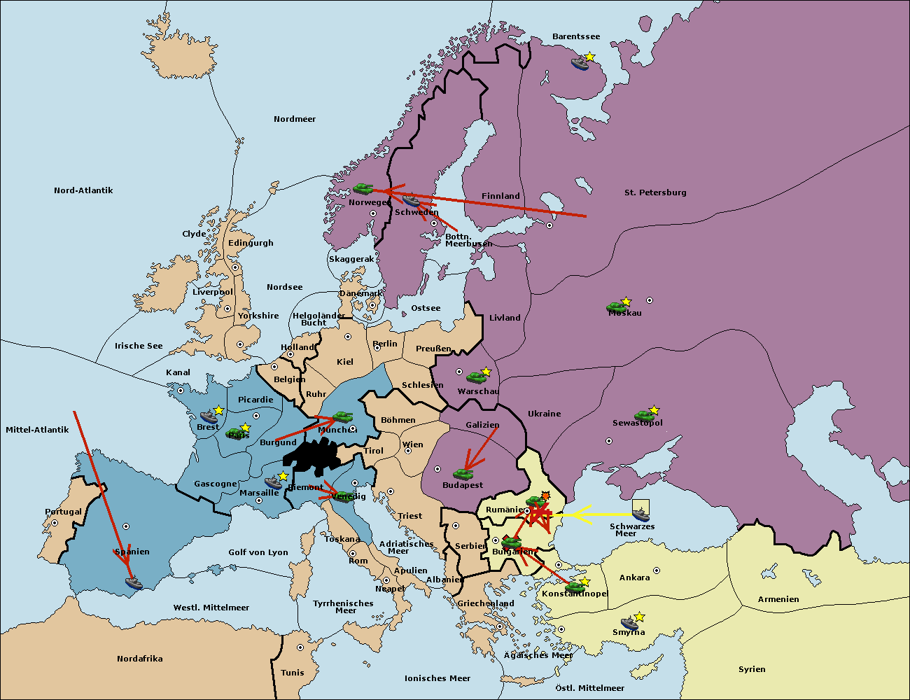 • Die Armee in Bulgarien support move nach Rumänien von Sewastopol.