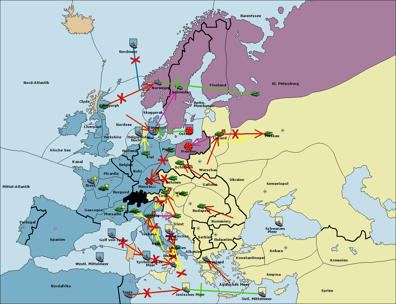 • Die Armee in Kiel support move nach München von Burgund.