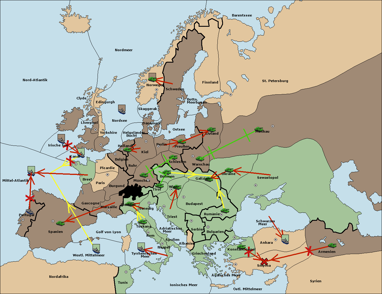 • Die Armee in Sewastopol support move nach Moskau von Ukraine. (gescheitert) (verdrängt)