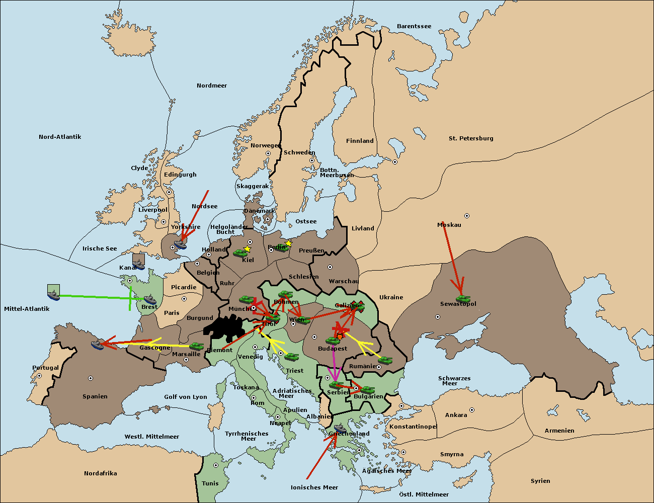 • Die Armee in Budapest support move nach Wien von Tirol.