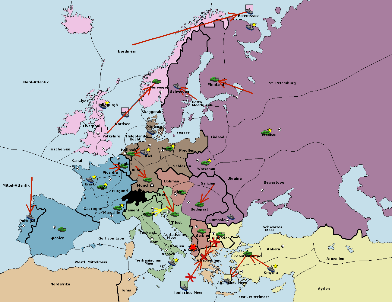 • Die Armee in Albanien move nach Triest. (gescheitert)