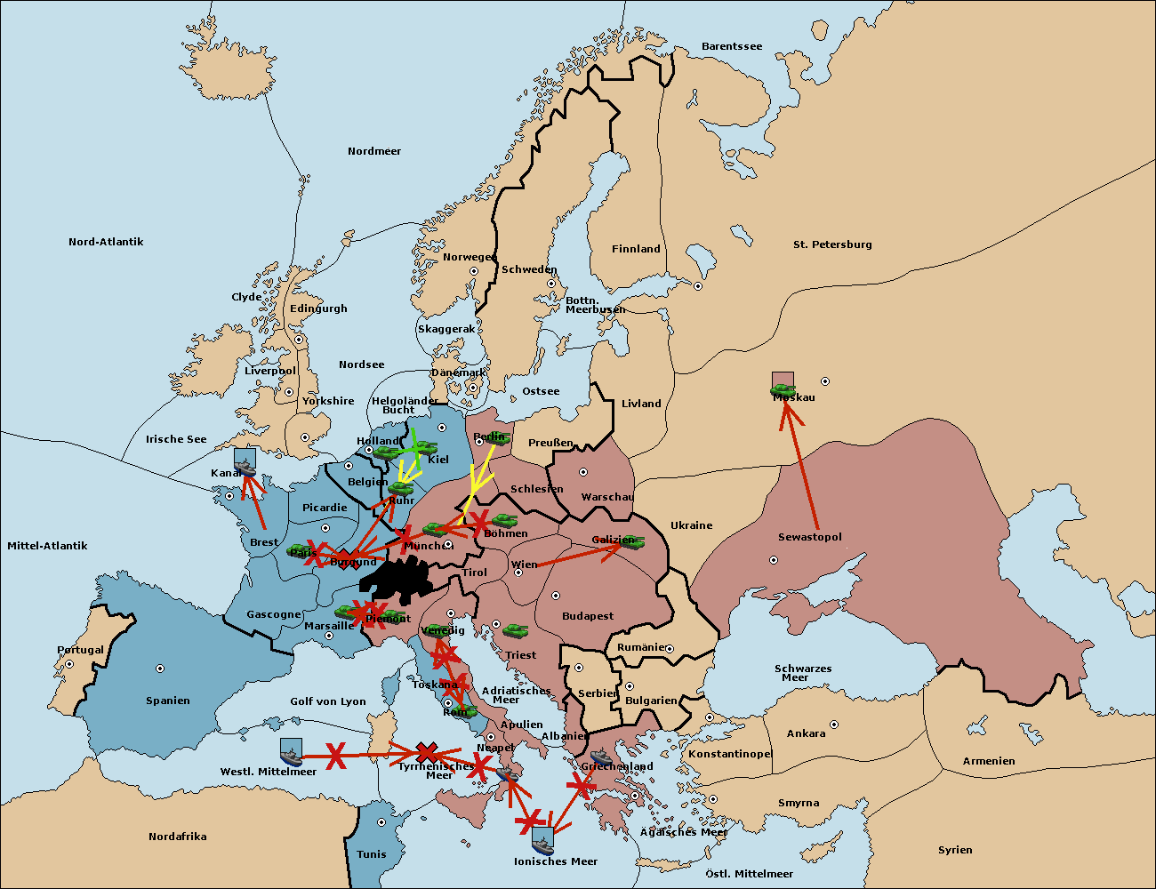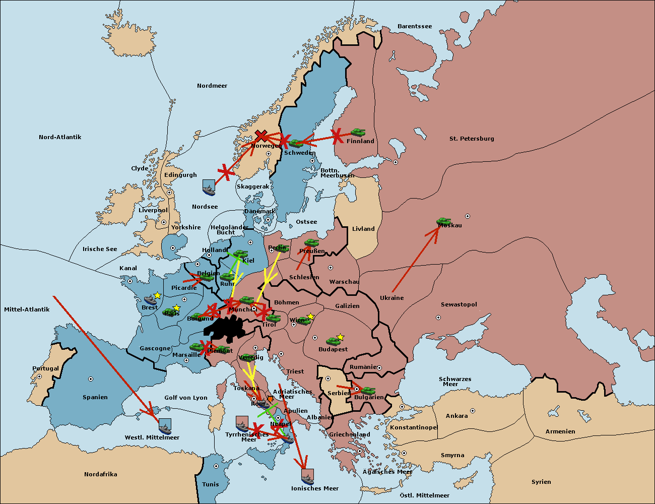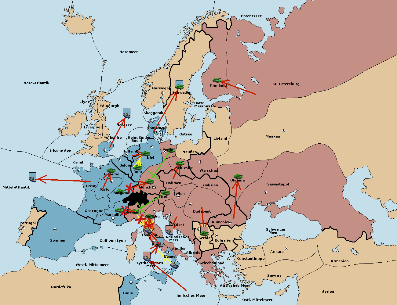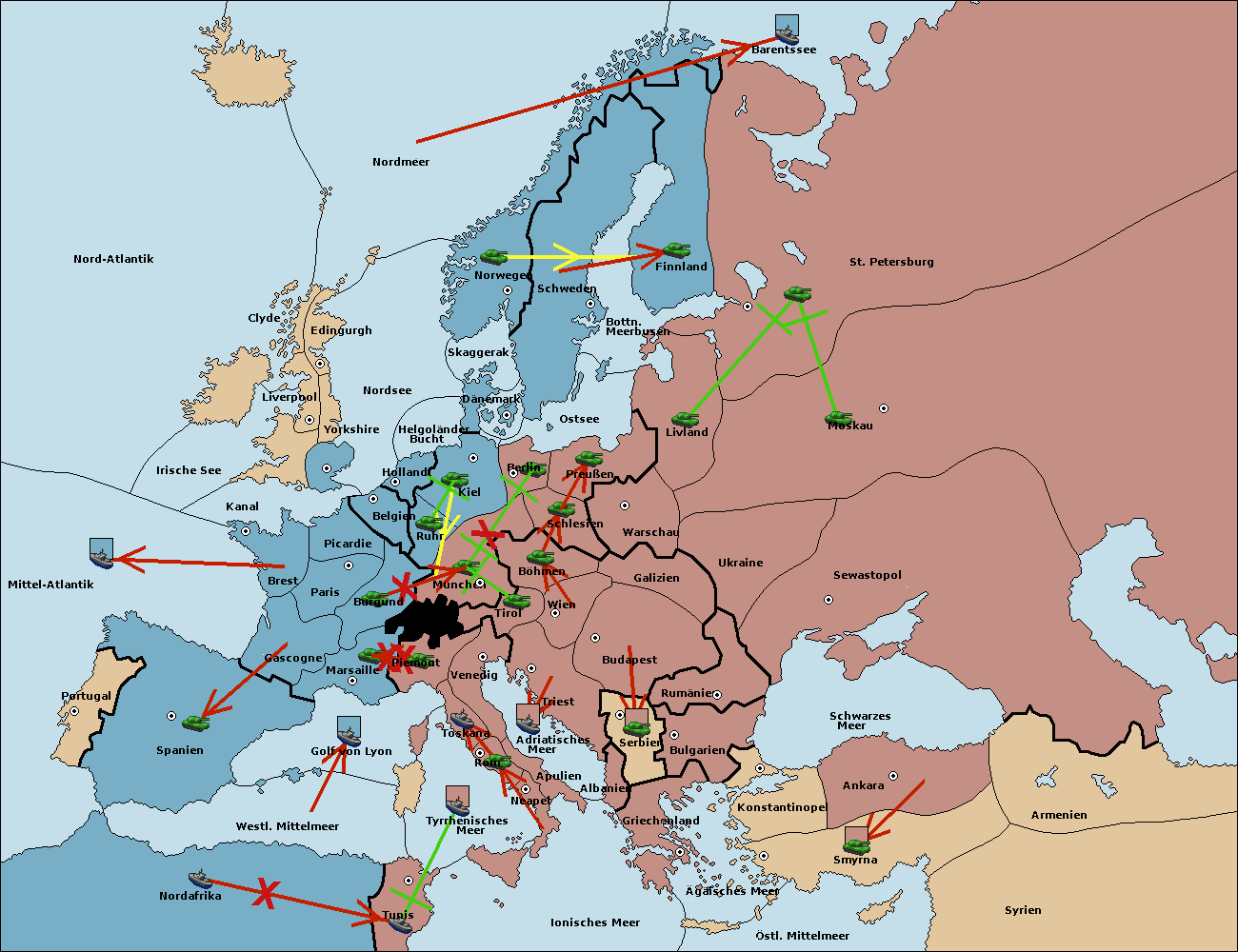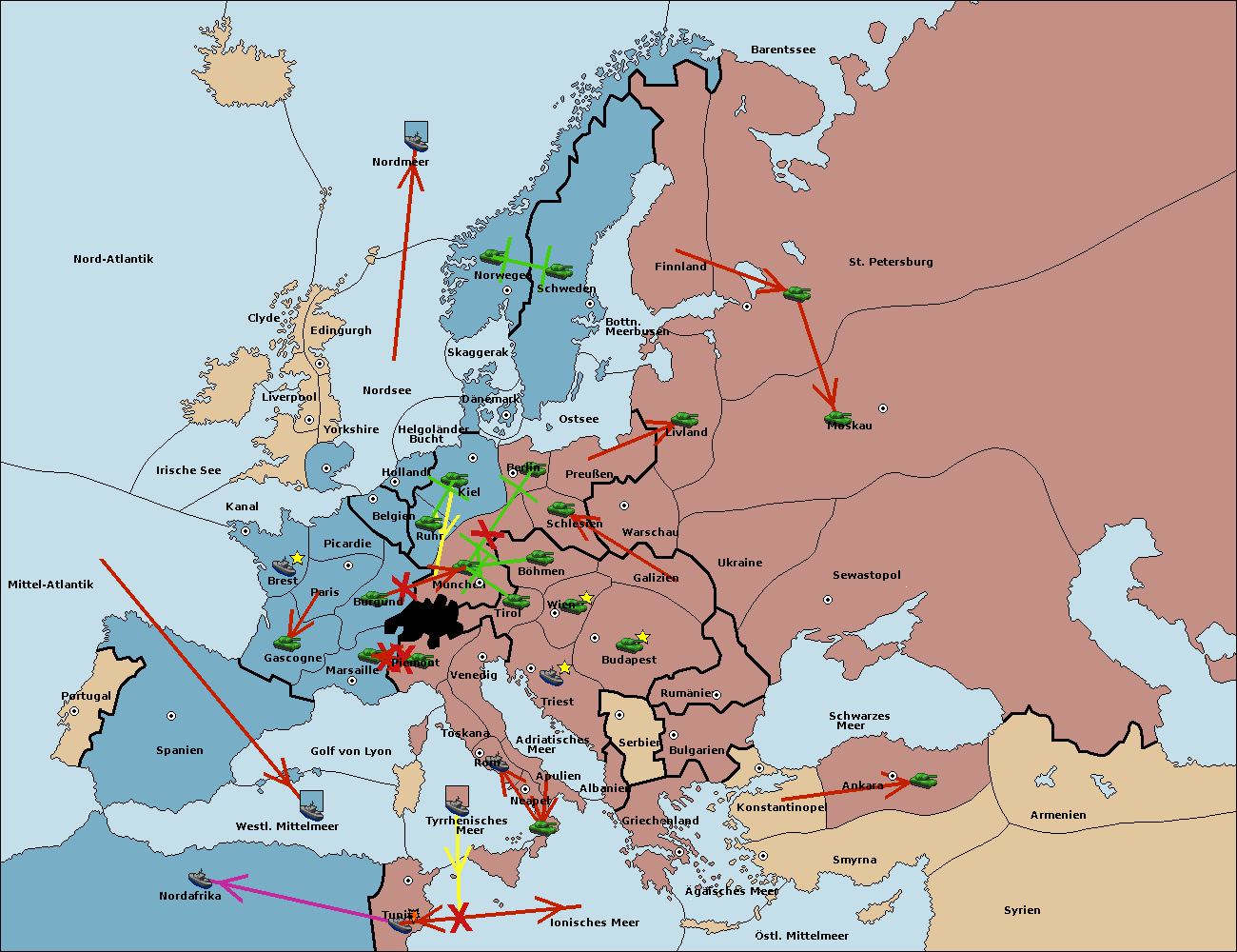 • Die Flotte in Nord Afrika move nach Tunis. (gescheitert)