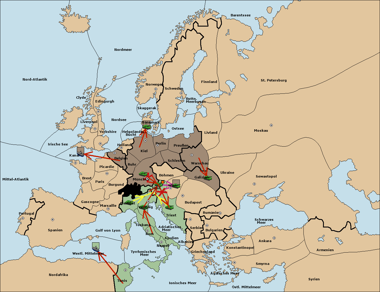 • Die Armee in München support move nach Tirol von Venedig. (gescheitert) (verdrängt)