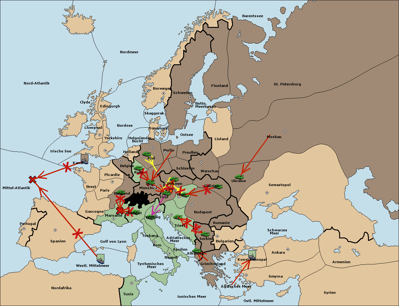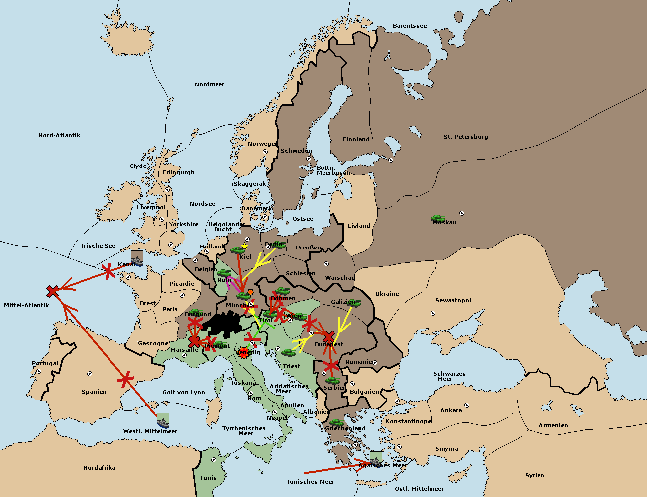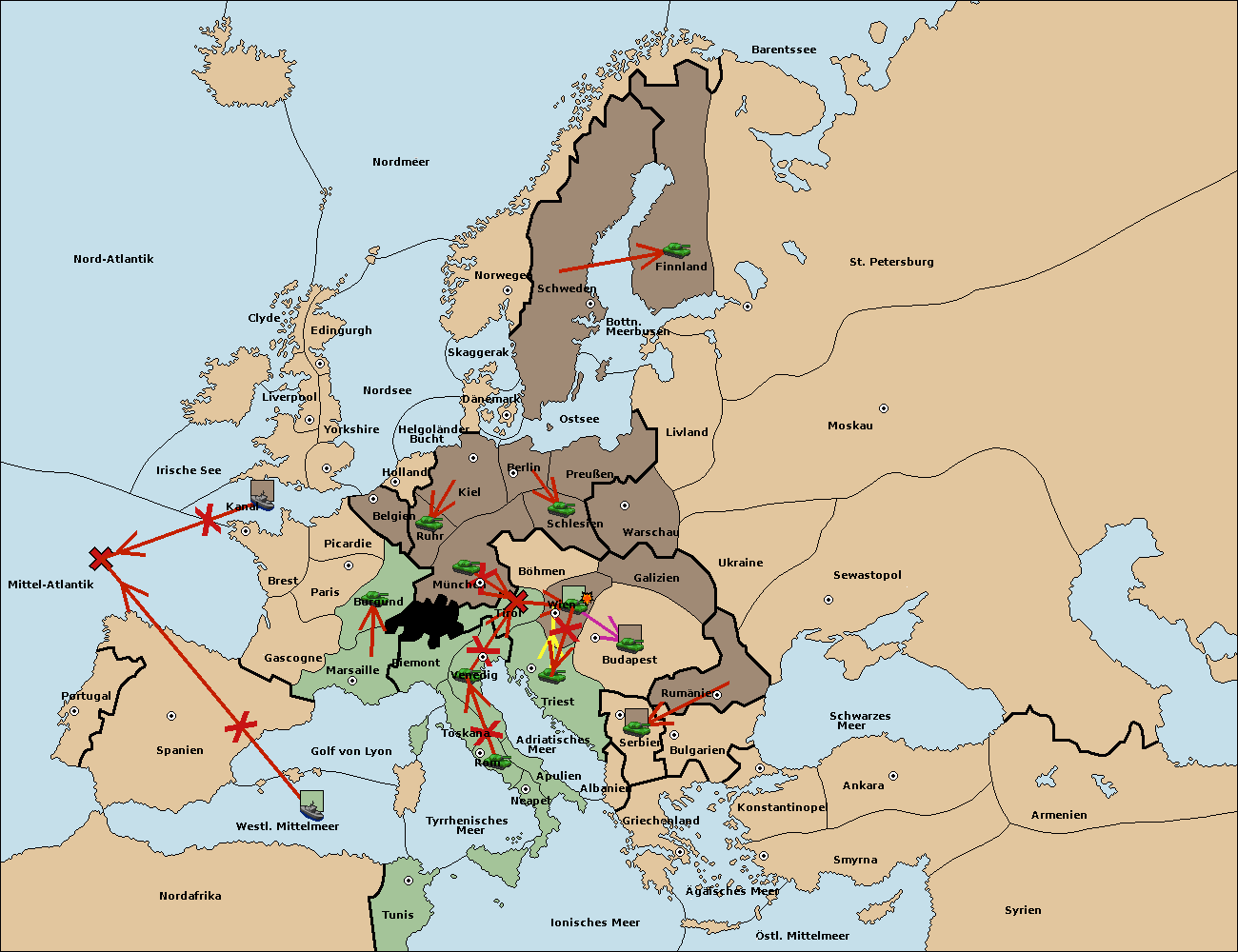 • Die Armee in Wien support move nach Triest von Budapest. (gescheitert)