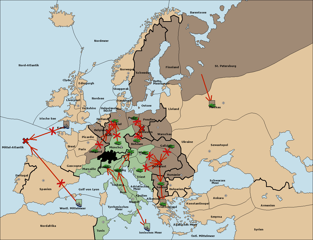 • Die Armee in Wien support move nach Böhmen von Tirol. (gescheitert)