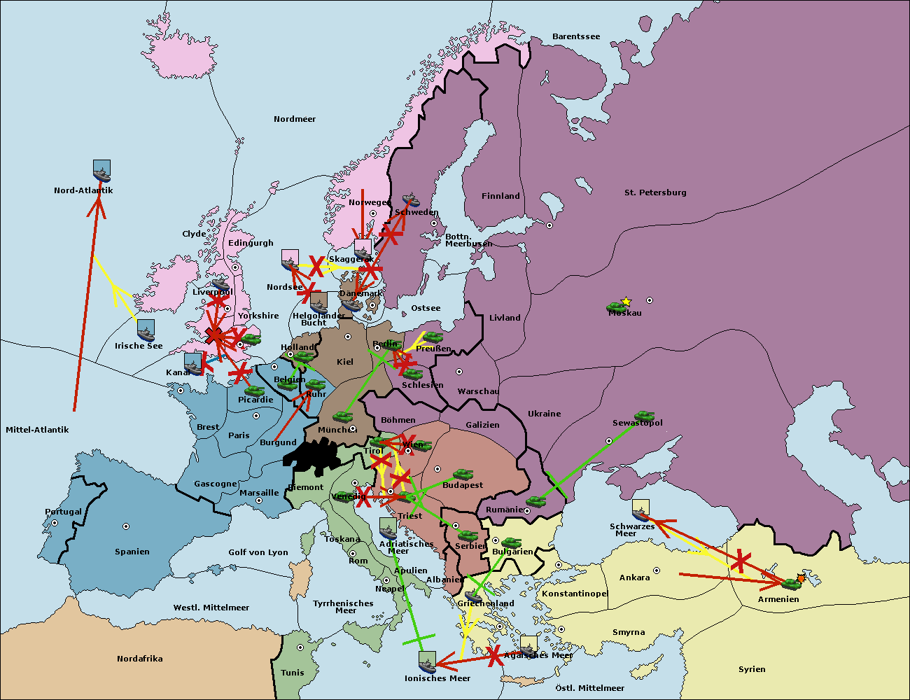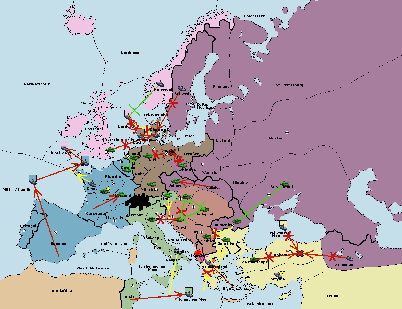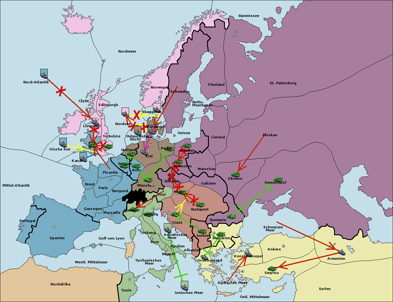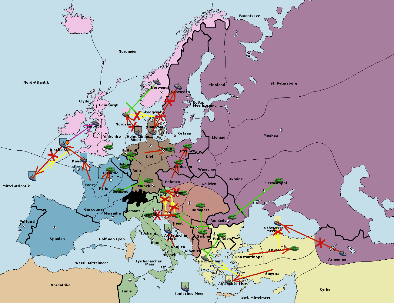 • Die Armee in Konstantinopel support hold nach Bulgarien.