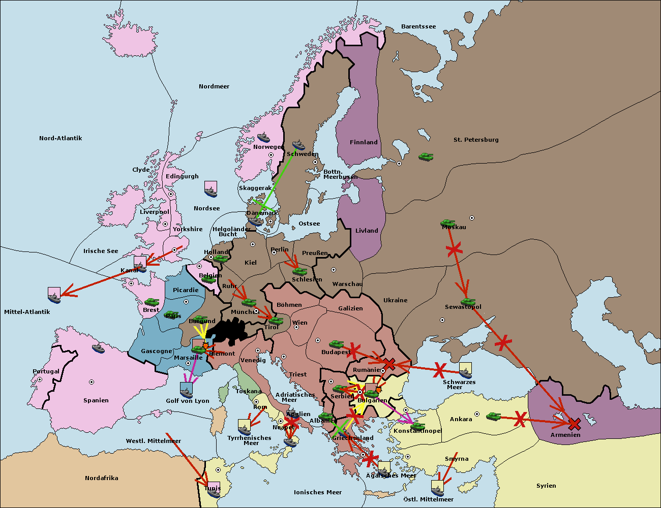 • Die Armee in Bulgarien wird zerstörtFlotte in Bulgarien gebaut.