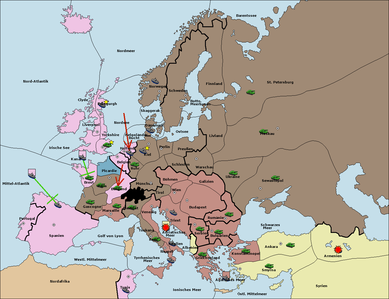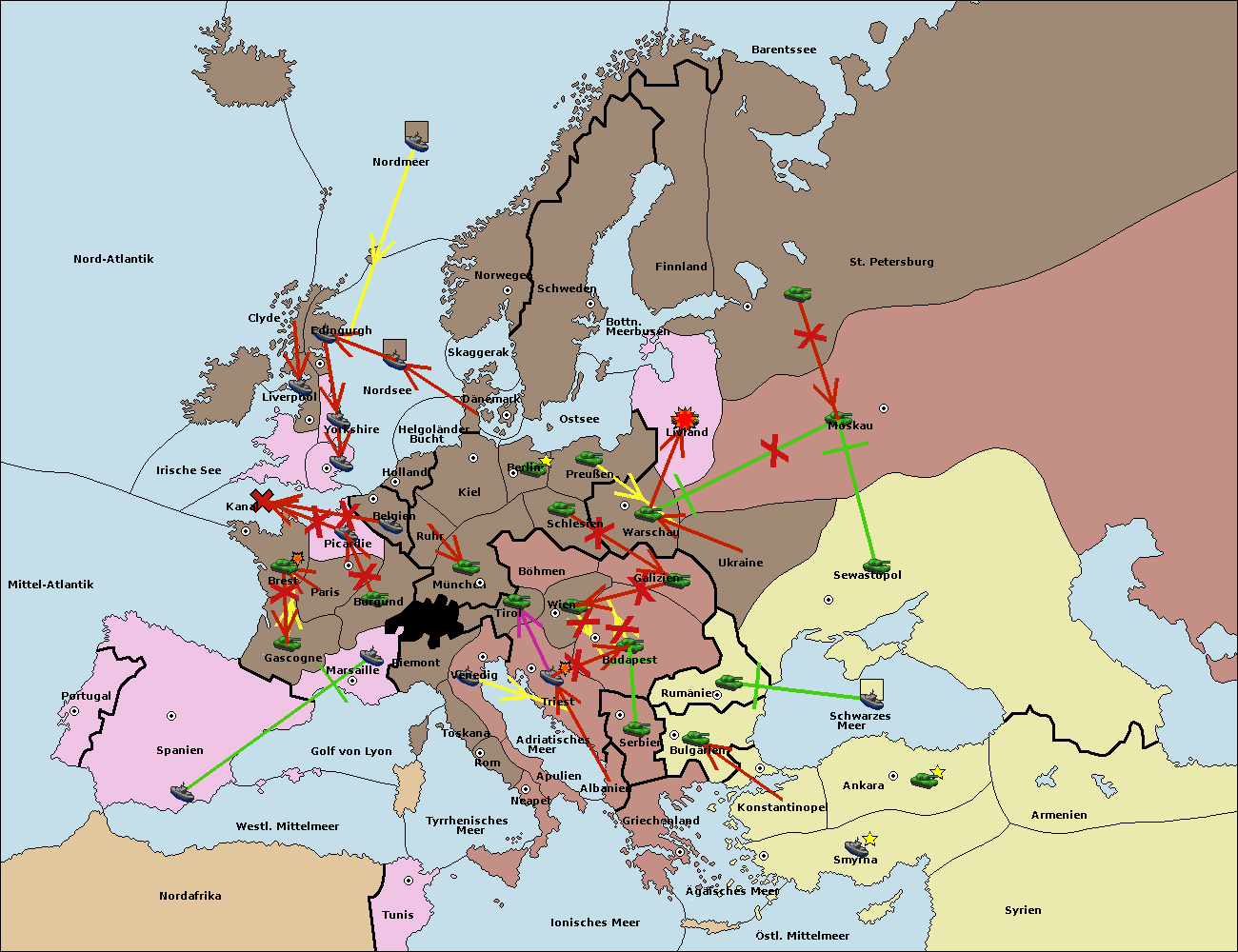 • Die Flotte in Bulgarien (Südküste) move nach Griechenland.