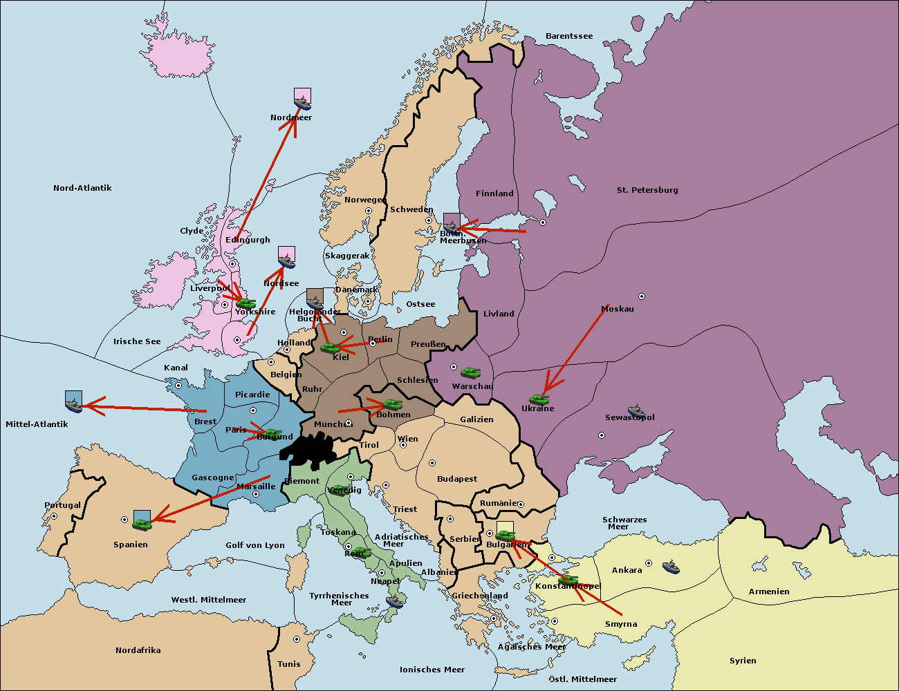 • Die Flotte in St. Petersburg (Nordküste) move nach Barentssee.