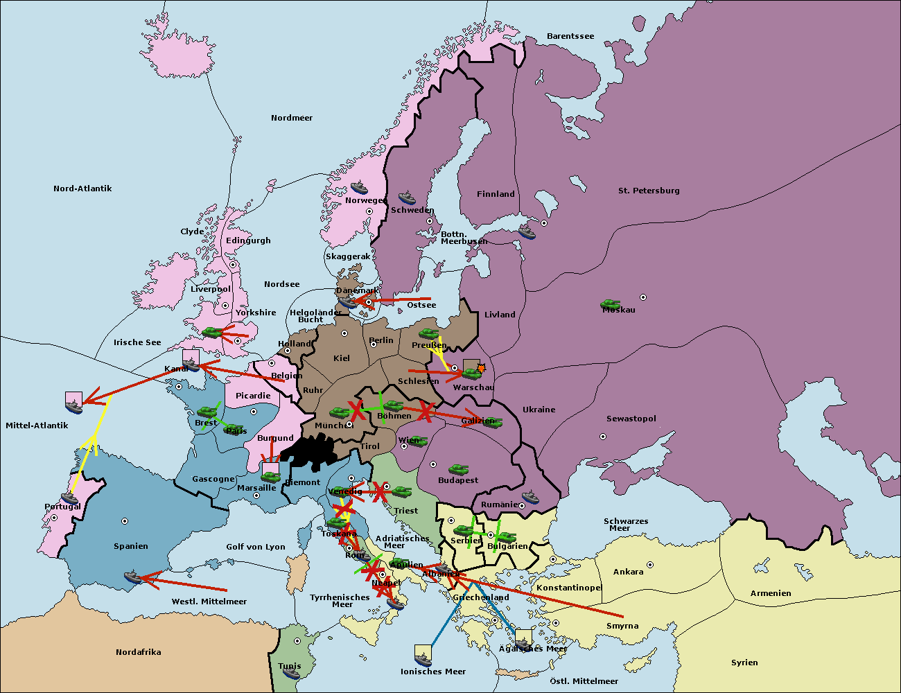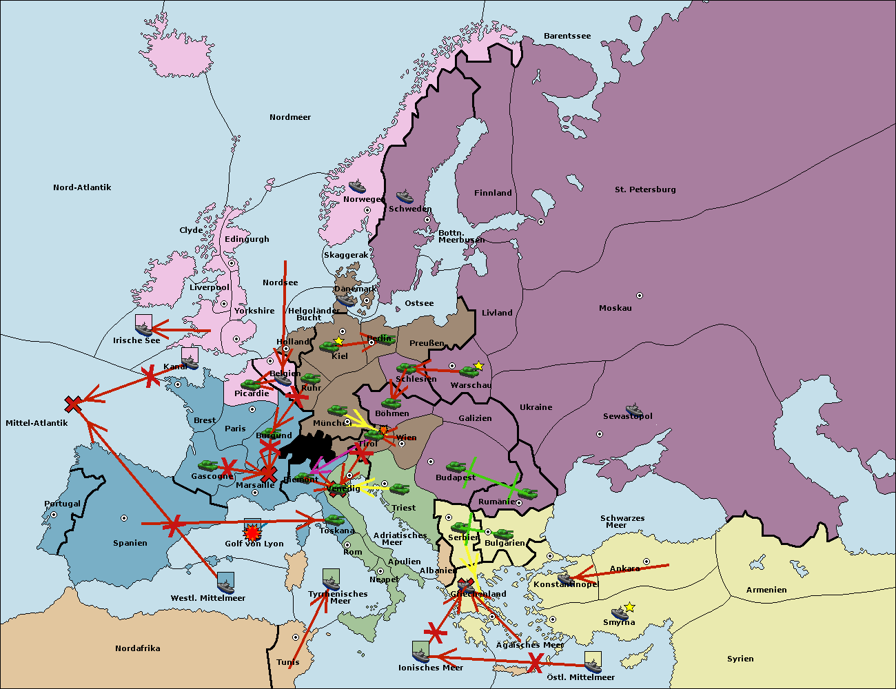 • Die Flotte in Spanien (Südküste) support move nach Golf von Lyon von westl. Mittelmeer.