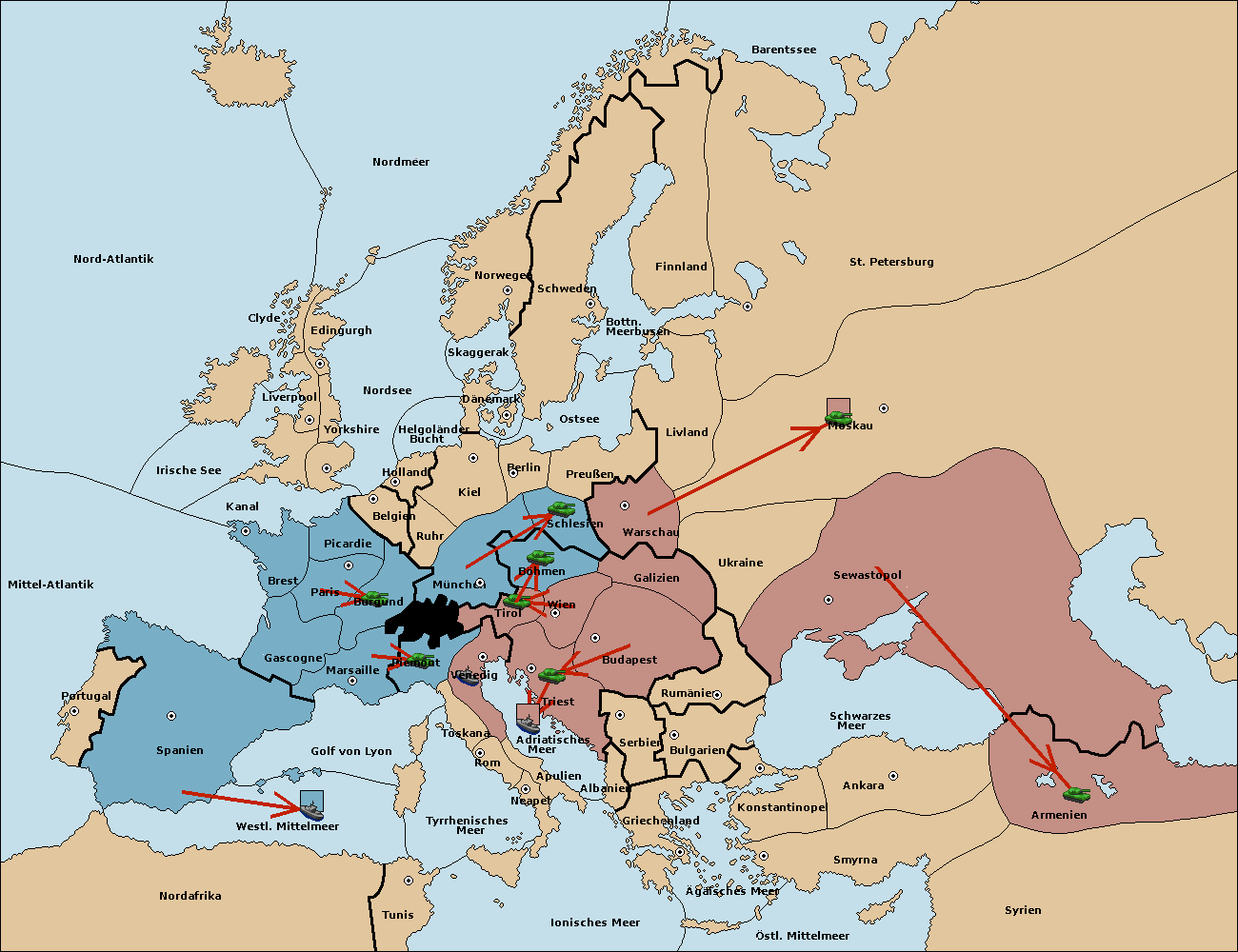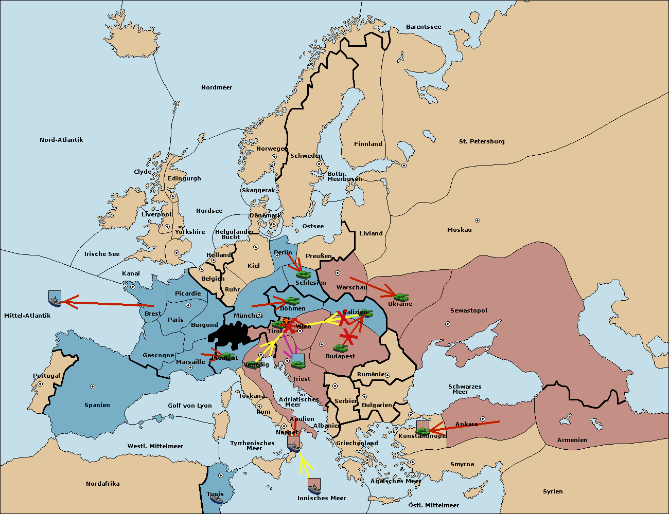 • Die Armee in Galizien support move nach Wien von Tirol. (gescheitert)