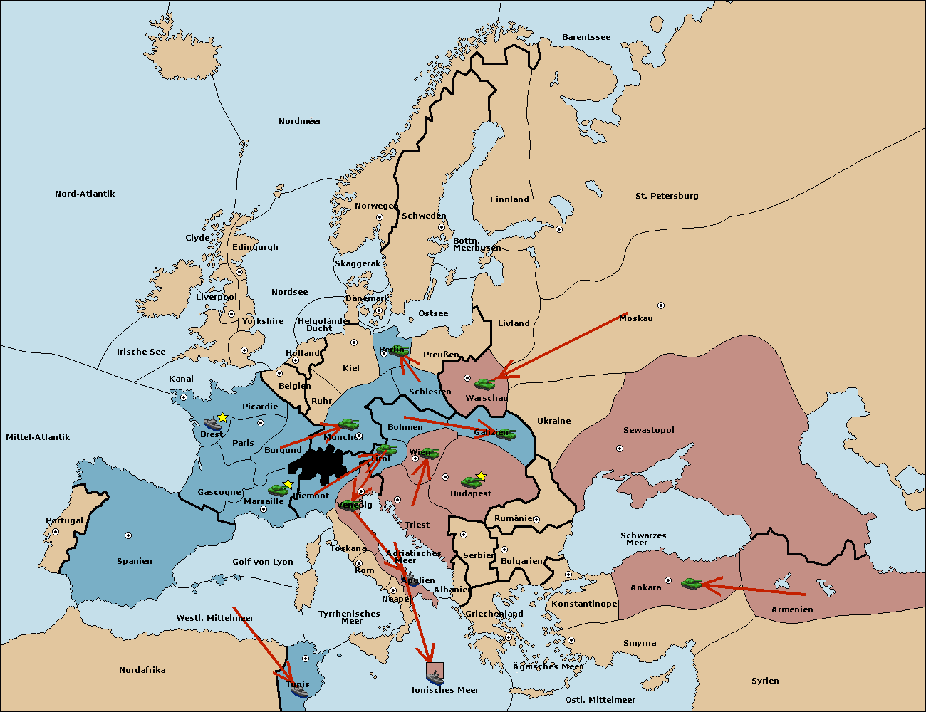 • Die Armee in Wien support move nach Budapest von Galizien.