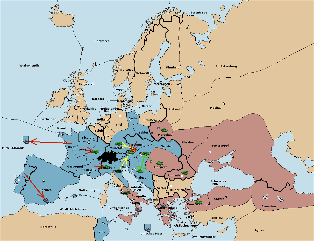 • Die Flotte in Spanien (Südküste) move nach westl. Mittelmeer.