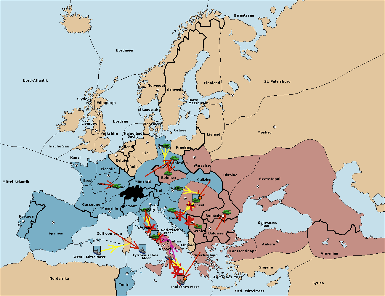• Die Armee in Tirol wird zerstörtFlotte in Tirol gebaut.