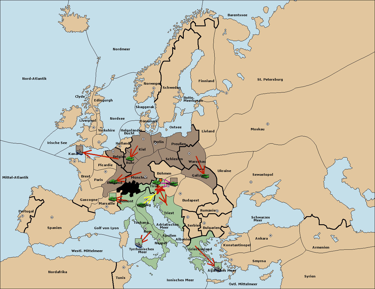 • Die Armee in Venedig support move nach Triest von Tirol.