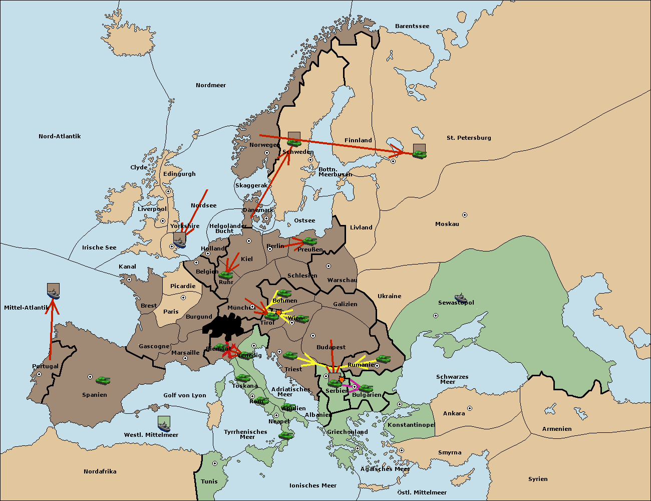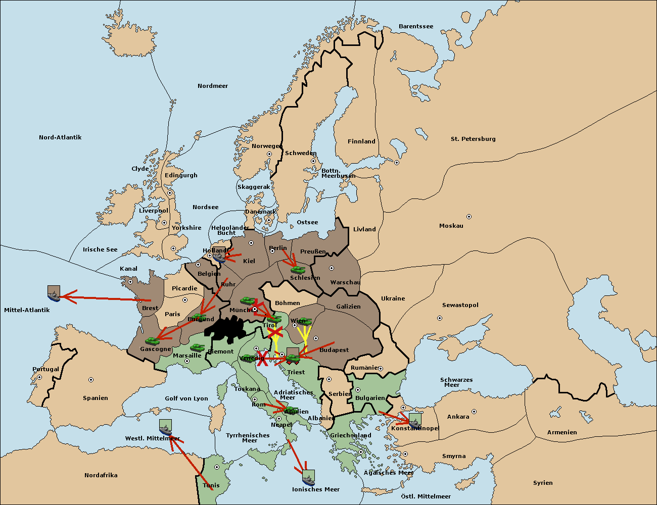 • Die Armee in Wien support move nach Triest von Budapest.