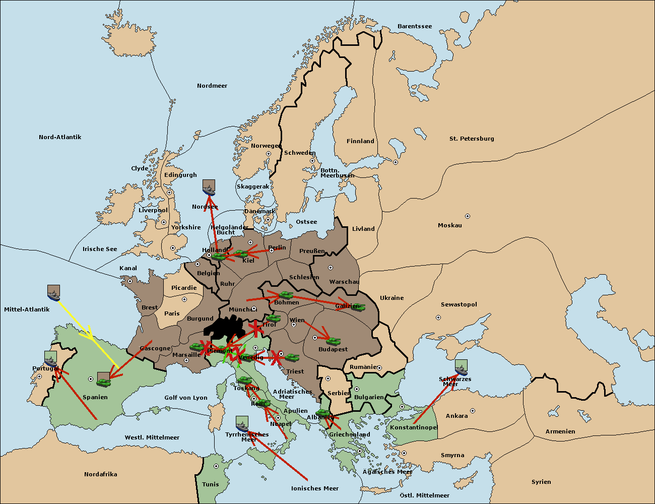 • Die Armee in Piemont support move nach Tirol von Böhmen.