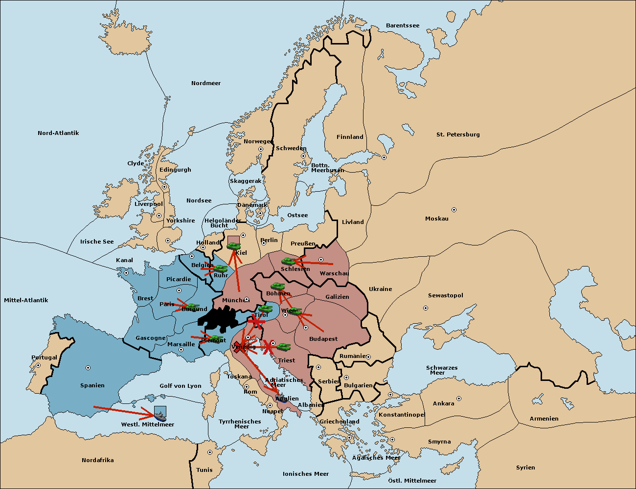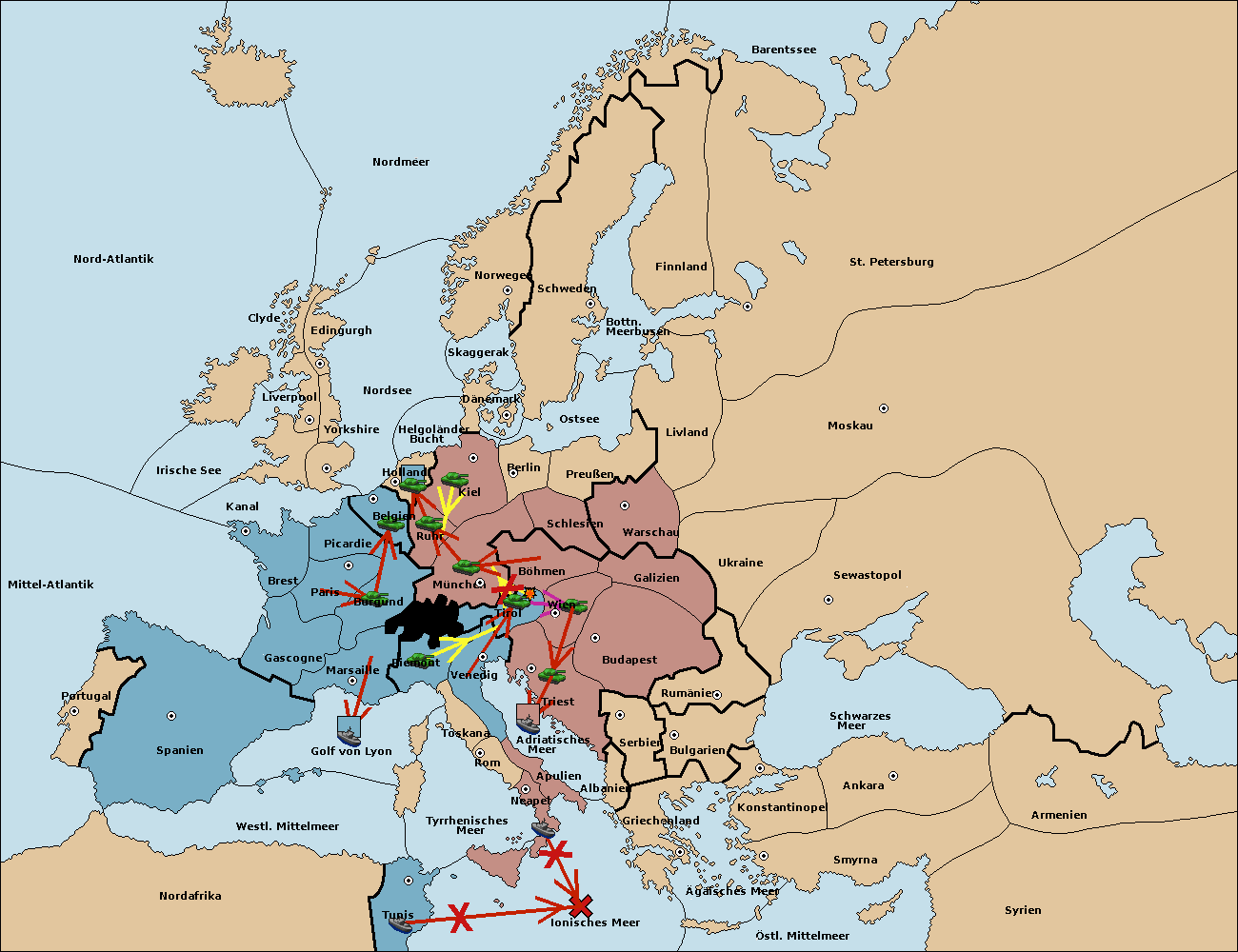 • Die Armee in Triest support move nach Tirol von Wien.