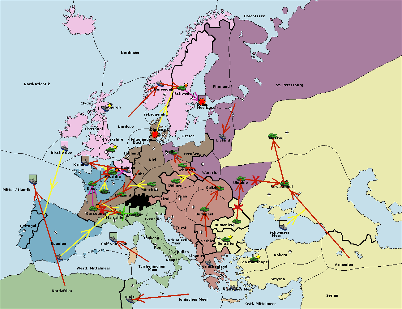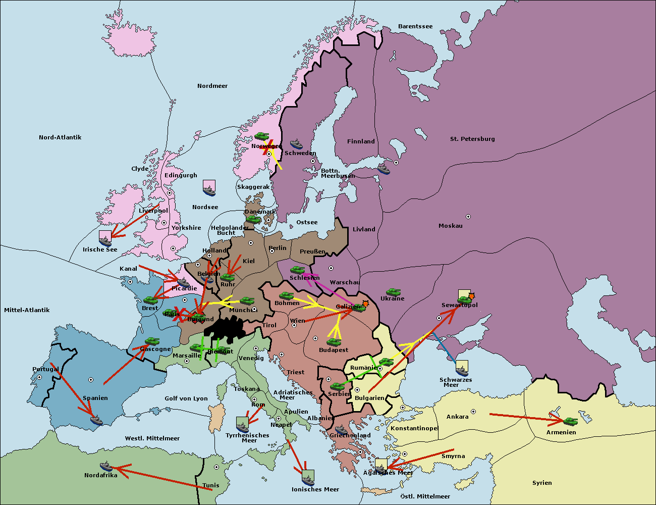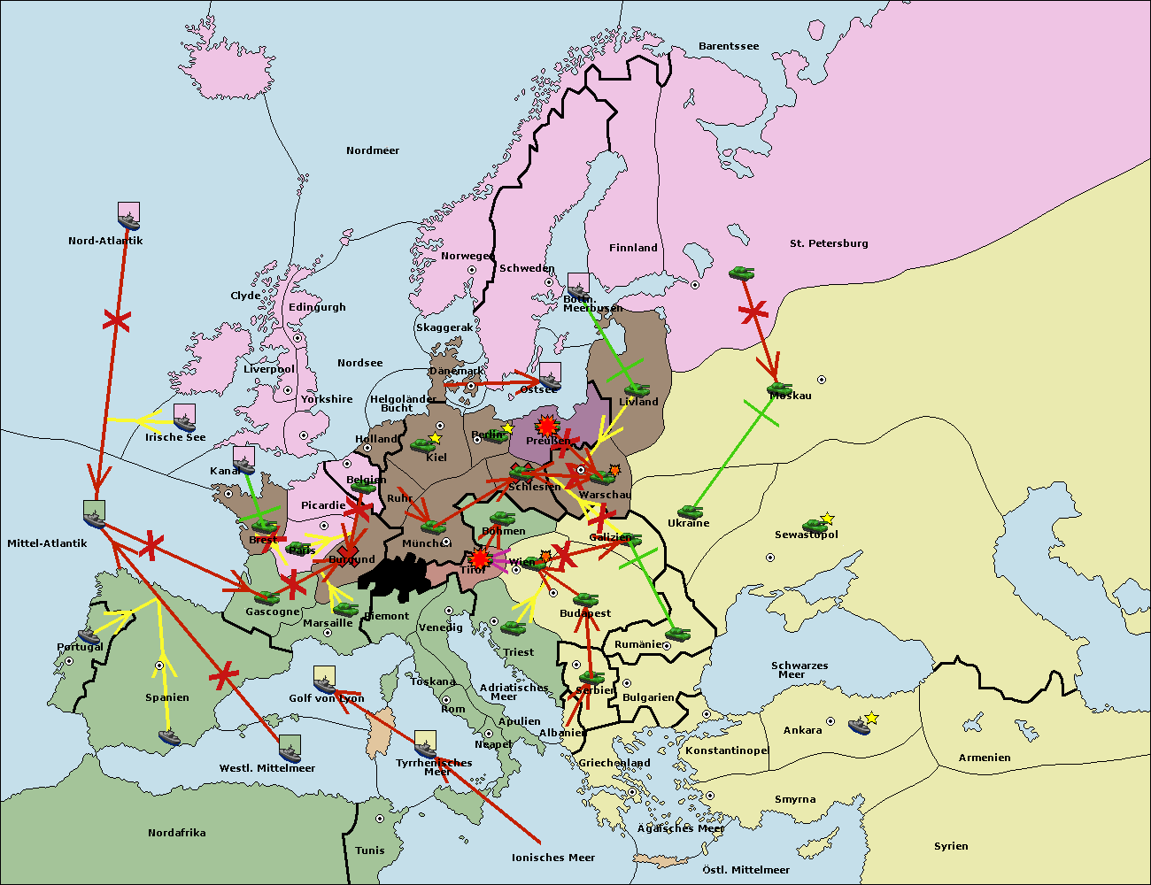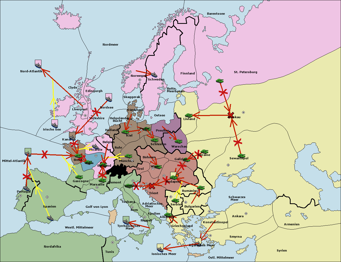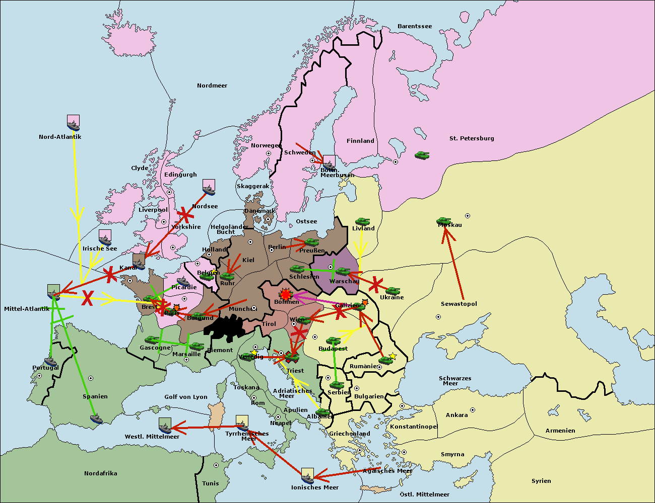 • Die Flotte in Spanien (Südküste) support move nach Mittel-Atlantik von westl. Mittelmeer.