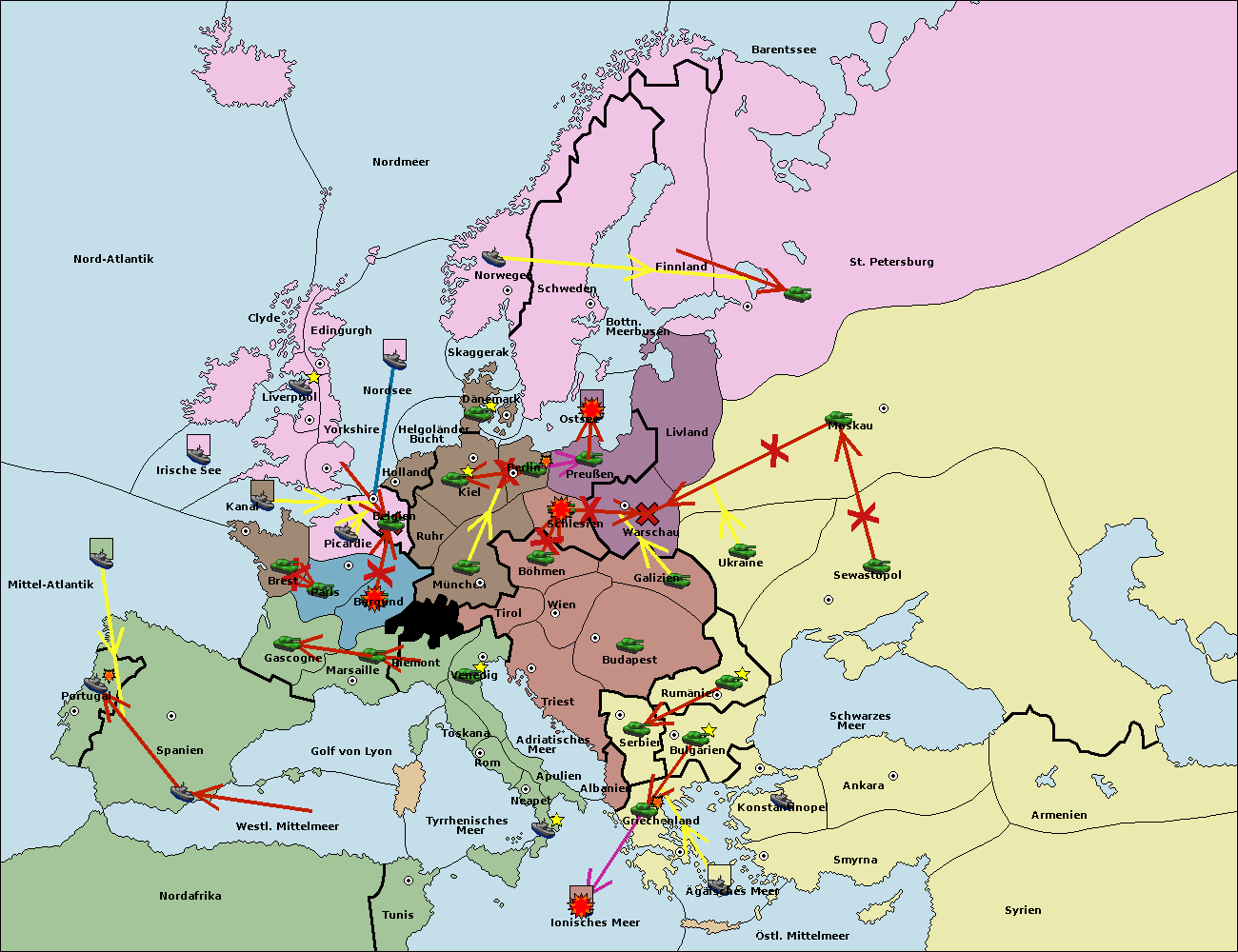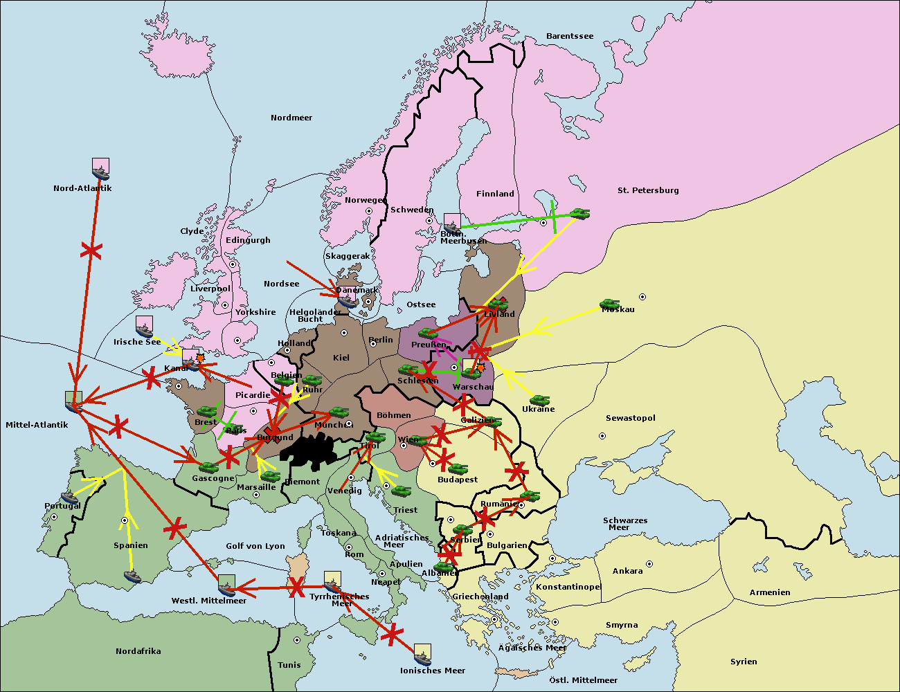 • Die Armee in Warschau wird zerstörtFlotte in Warschau gebaut.