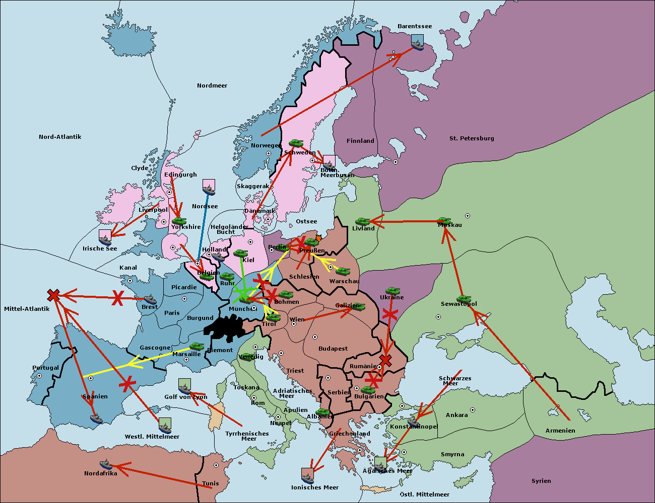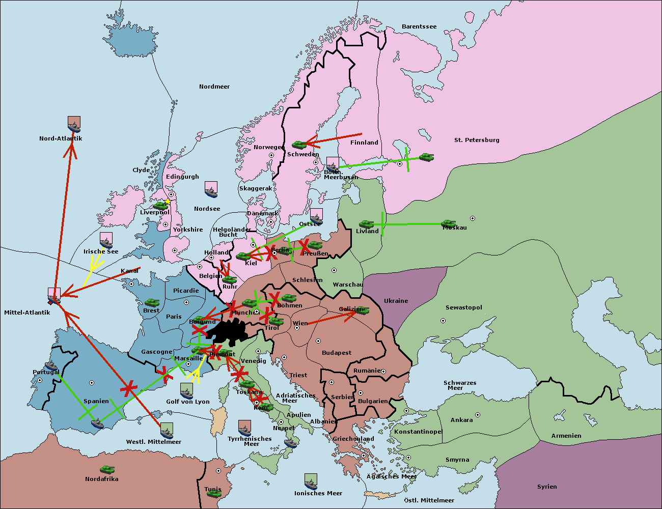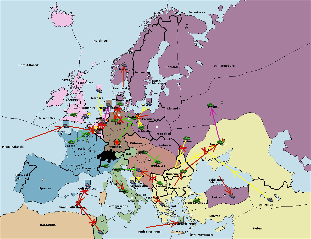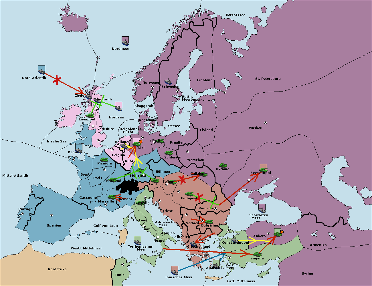 • Die Armee in Kiel support move nach München von Berlin.