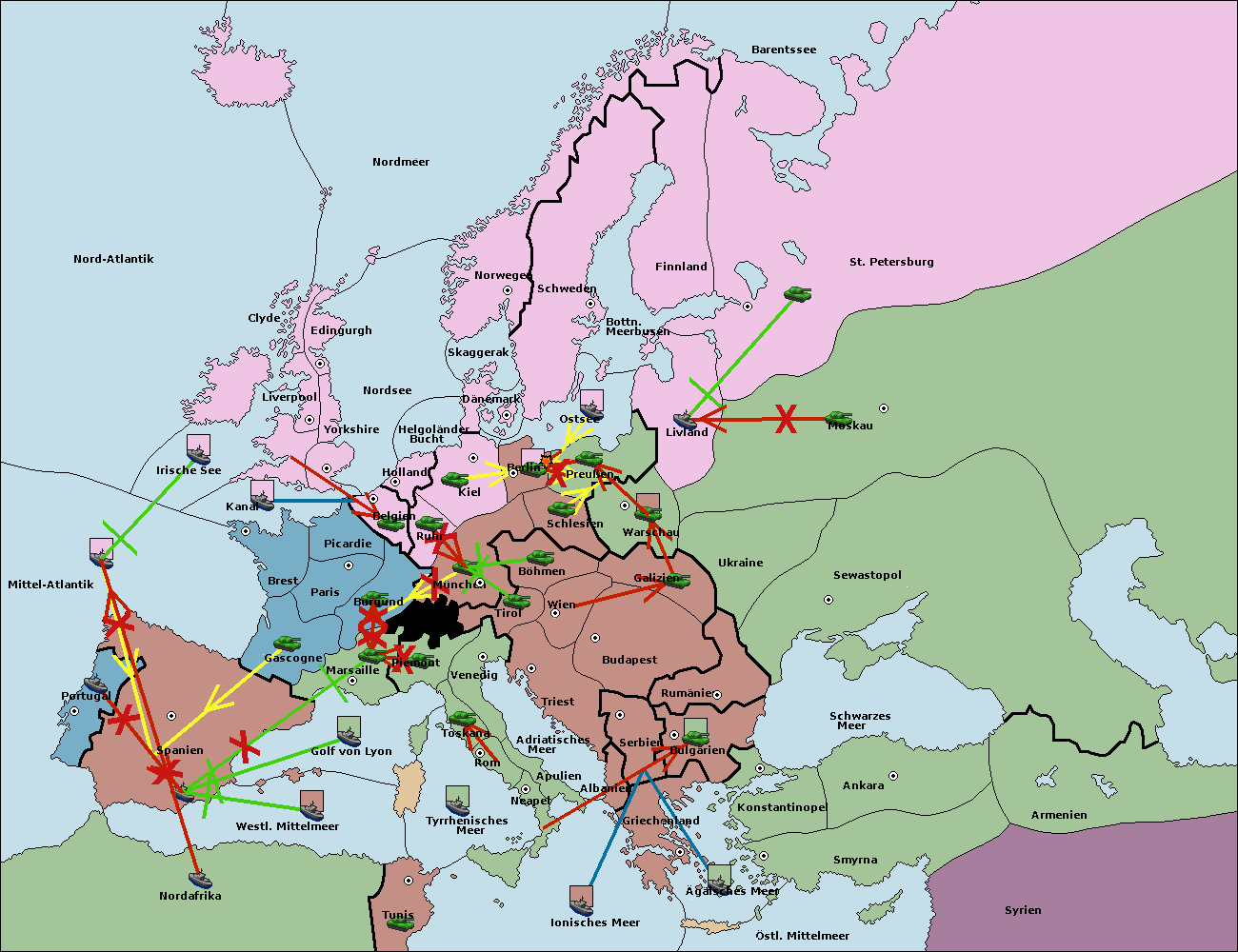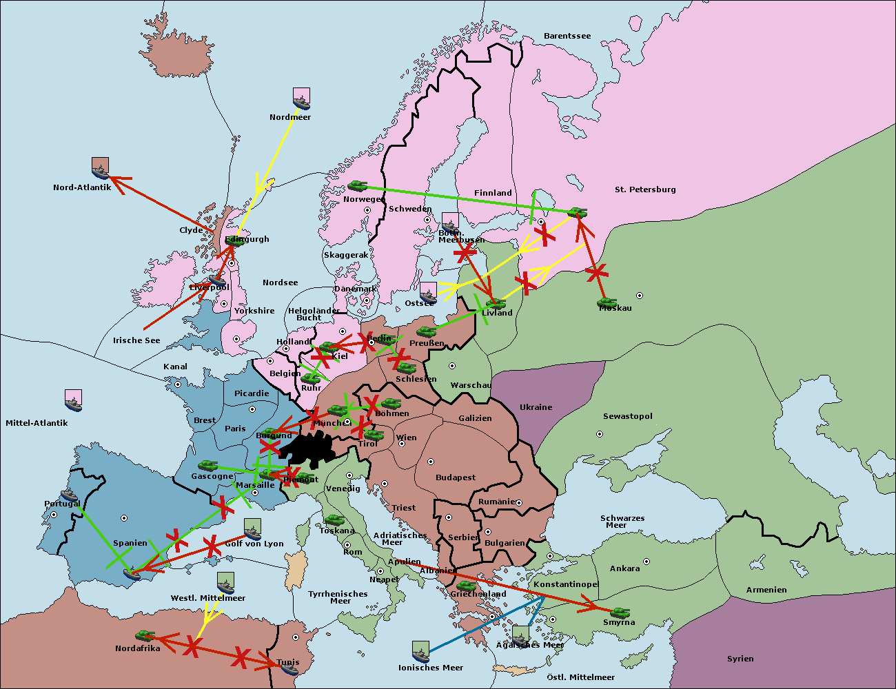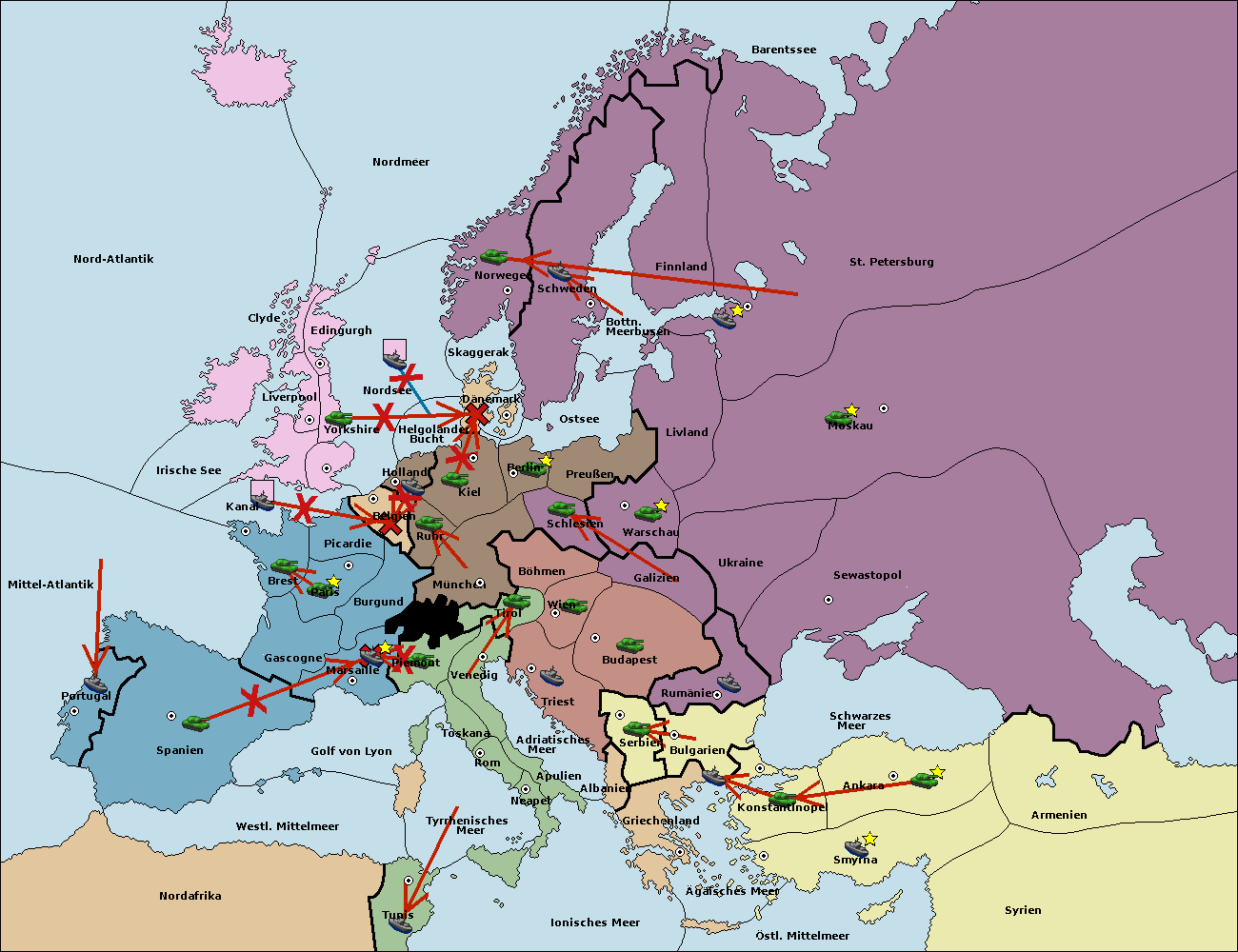 • Die Armee in Kiel support move nach München von Berlin.