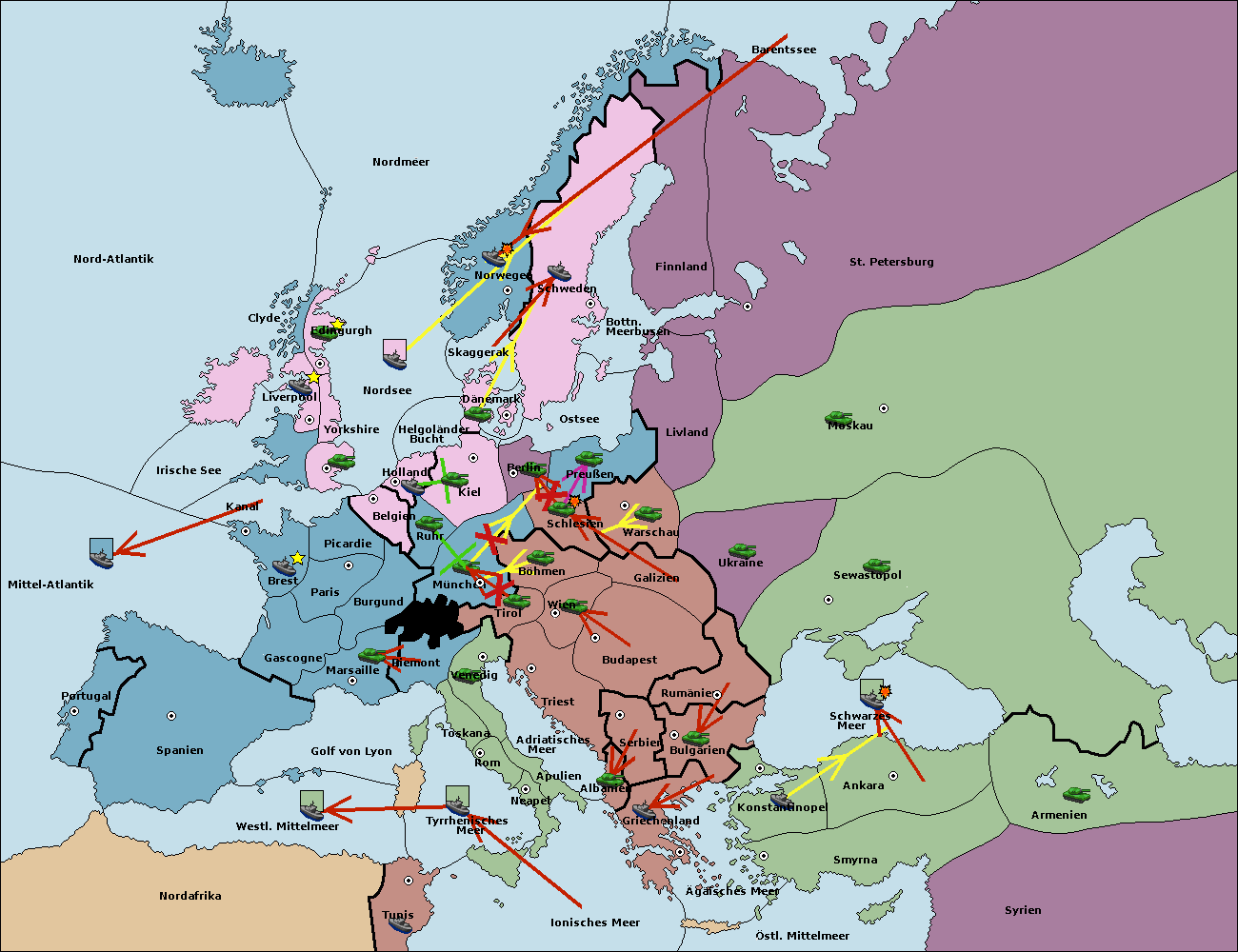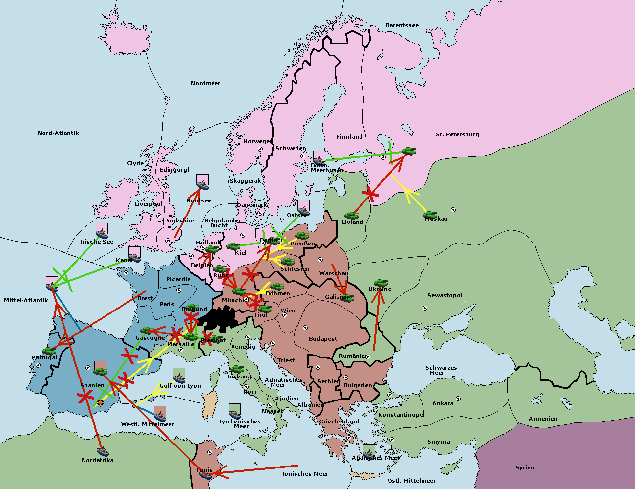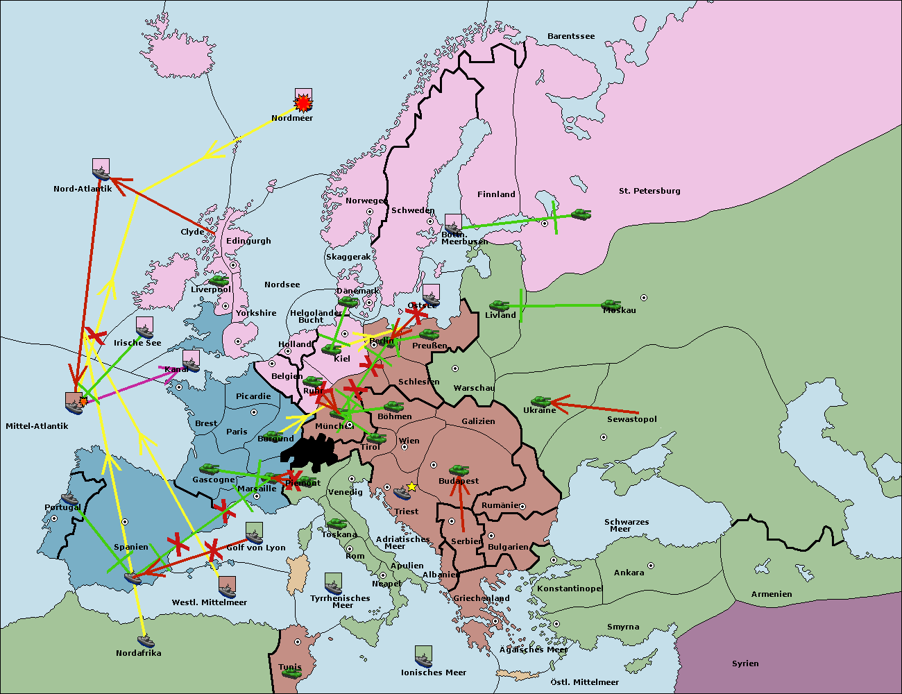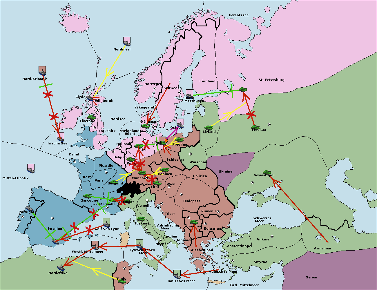 • Die Armee in Kiel support move nach München von Berlin.