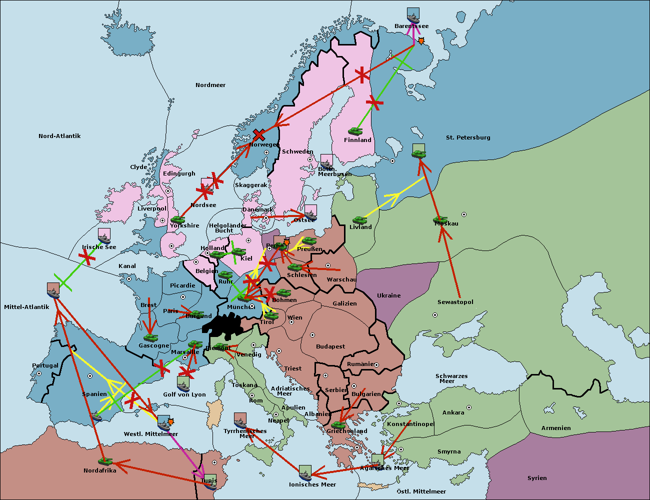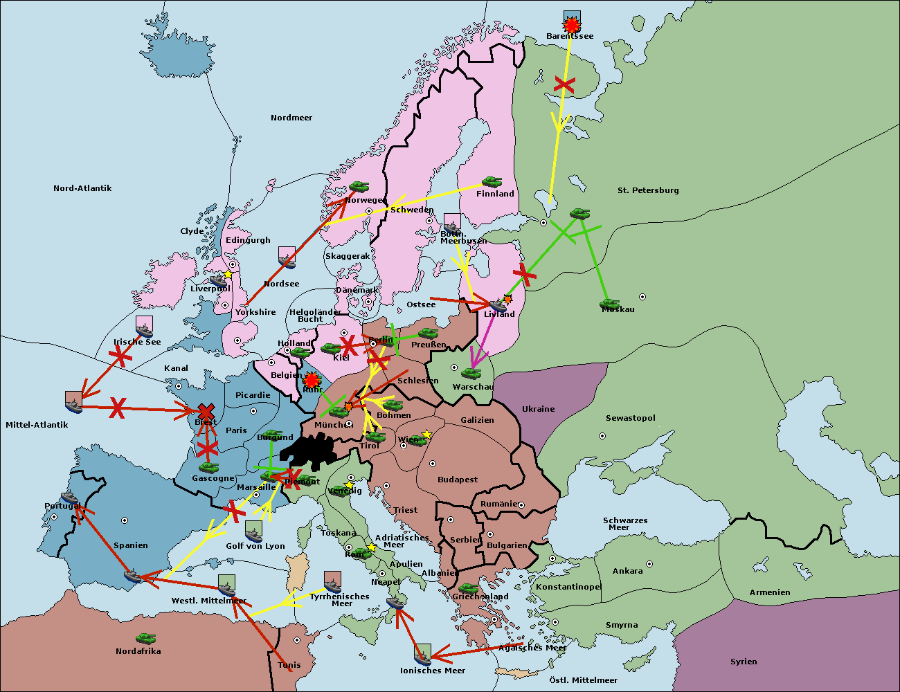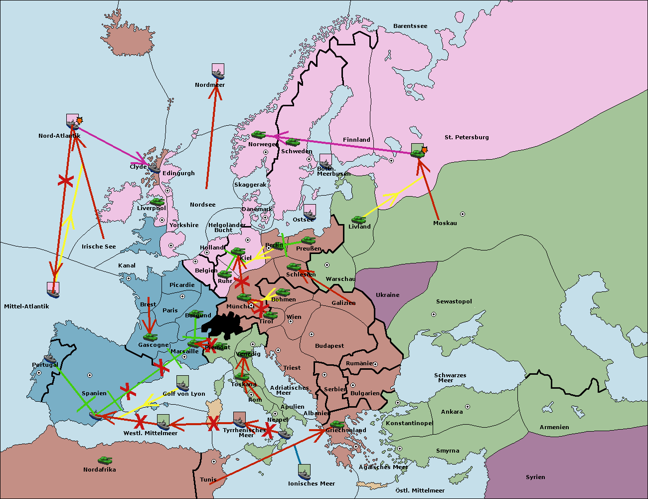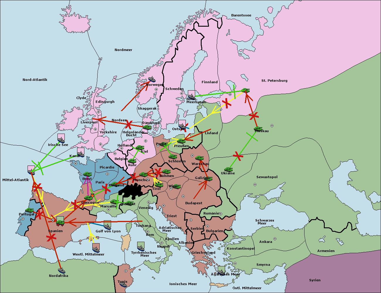 • Die Flotte in Golf von Lyon move nach westl. Mittelmeer. (gescheitert)