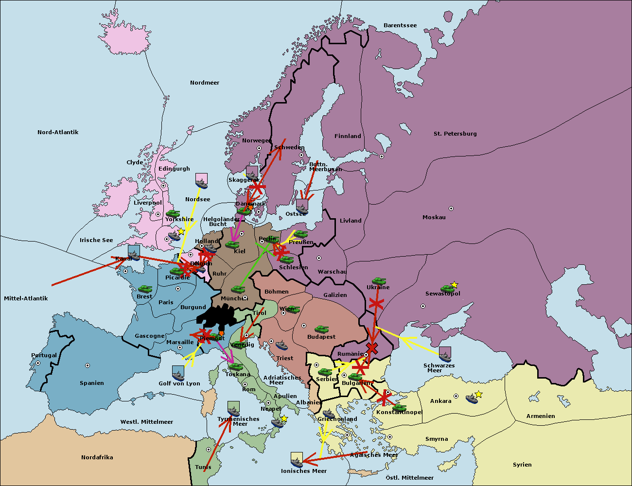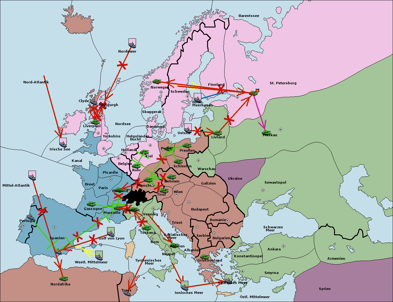 • Die Flotte in Golf von Lyon move nach Piemont. (gescheitert)