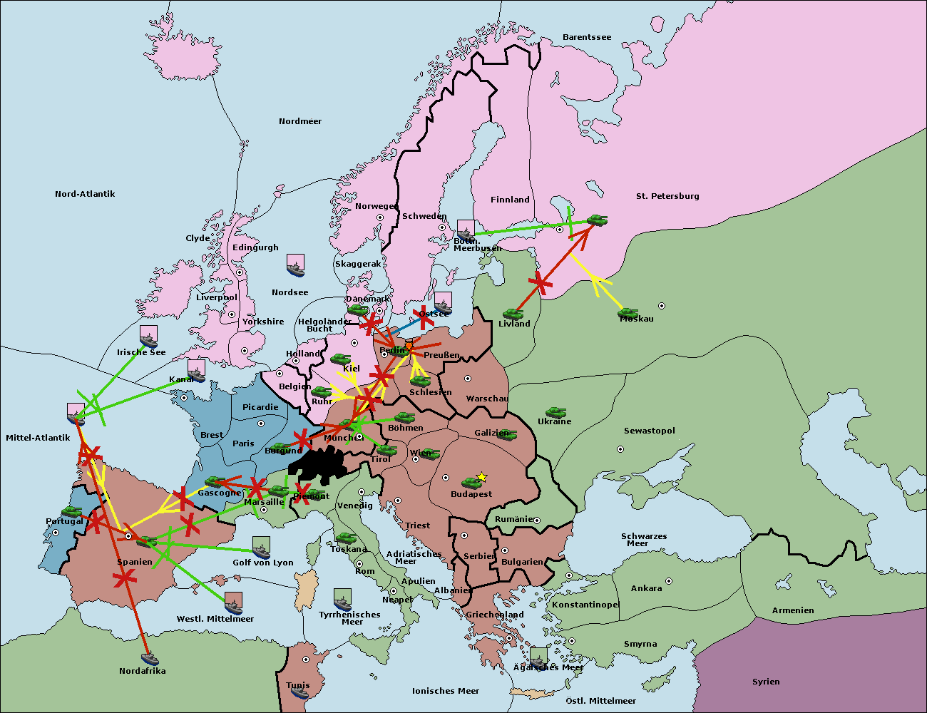 • Die Armee in Berlin wird zerstörtFlotte in Berlin gebaut.