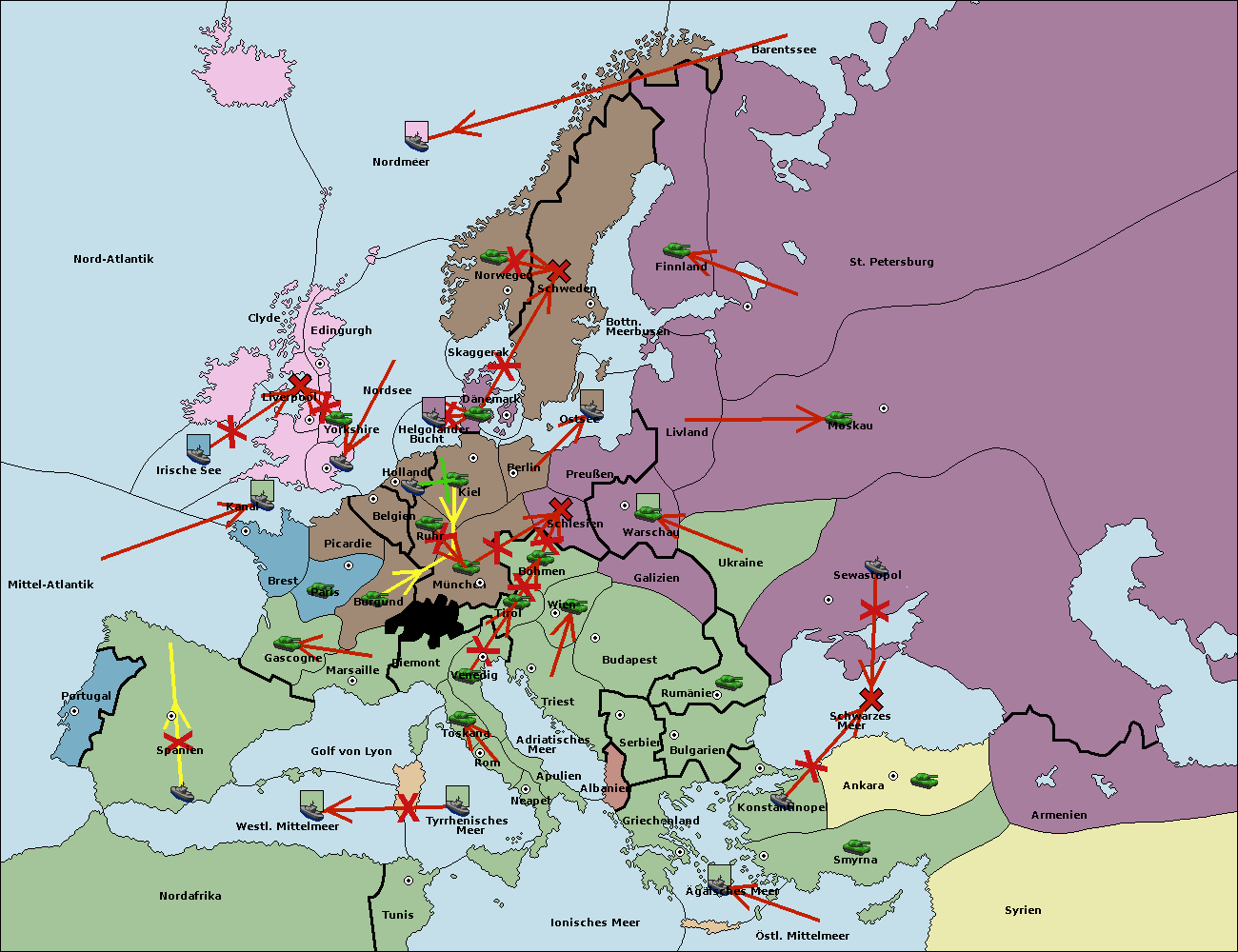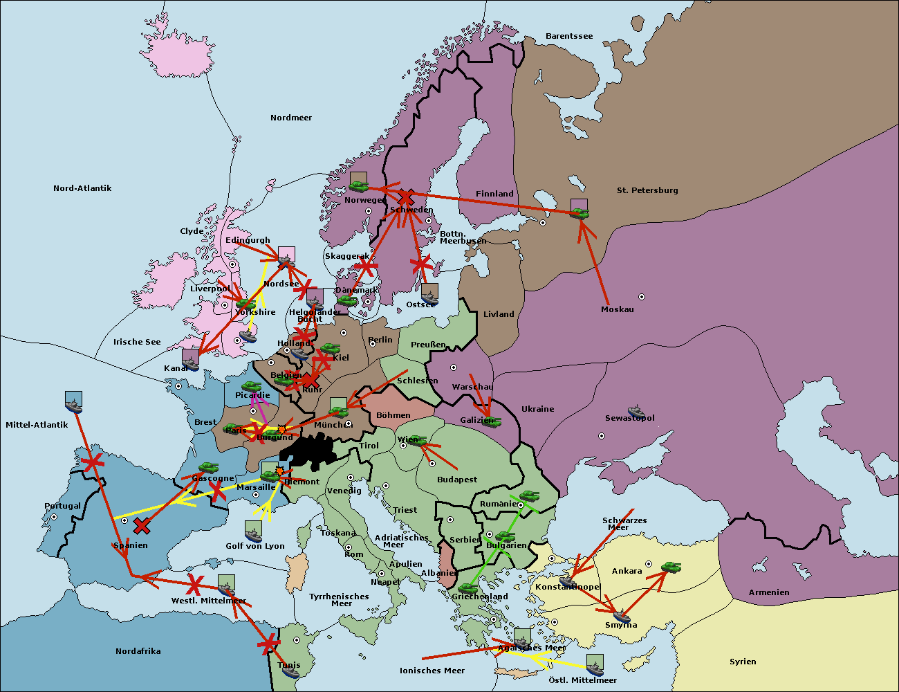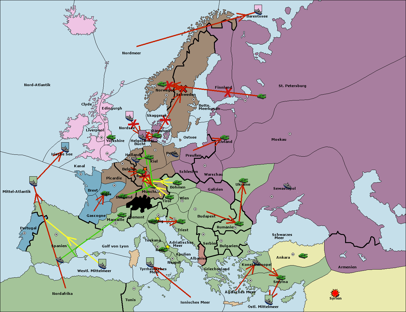 • Die Flotte in St. Petersburg (Nordküste) move nach Norwegen.