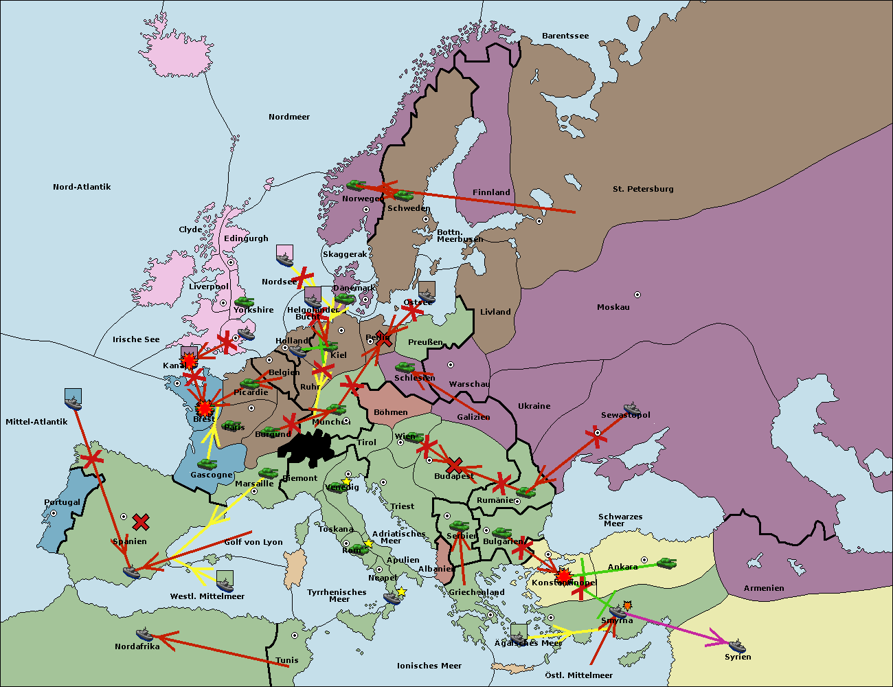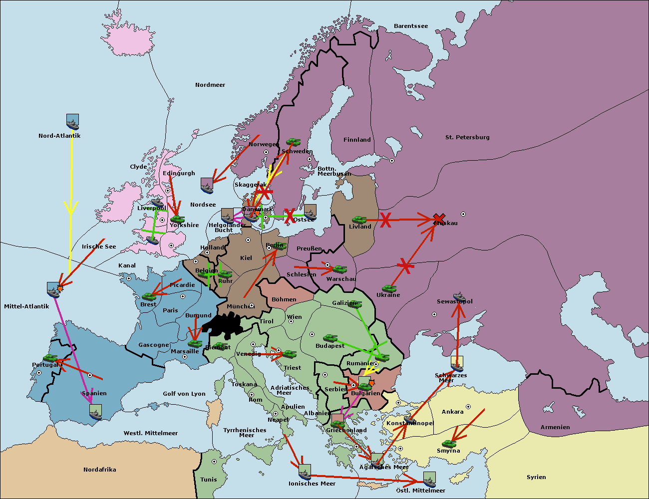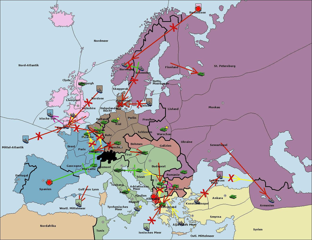 • Die Flotte in St. Petersburg (Nordküste) move nach Norwegen.