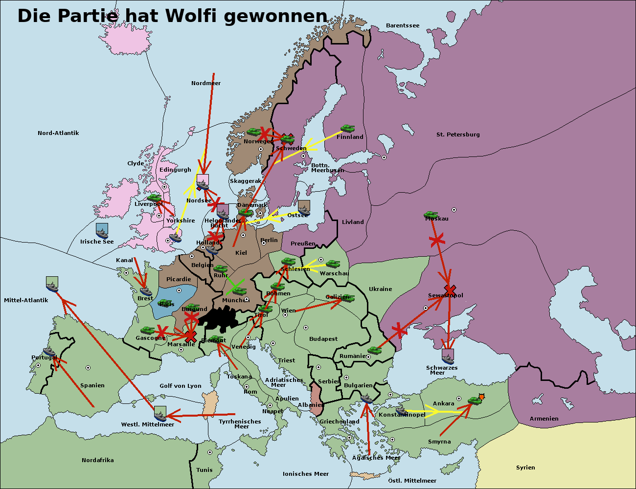 • Die Flotte in Ankara support move nach Schwarzes Meer von Sewastopol. (gescheitert)